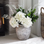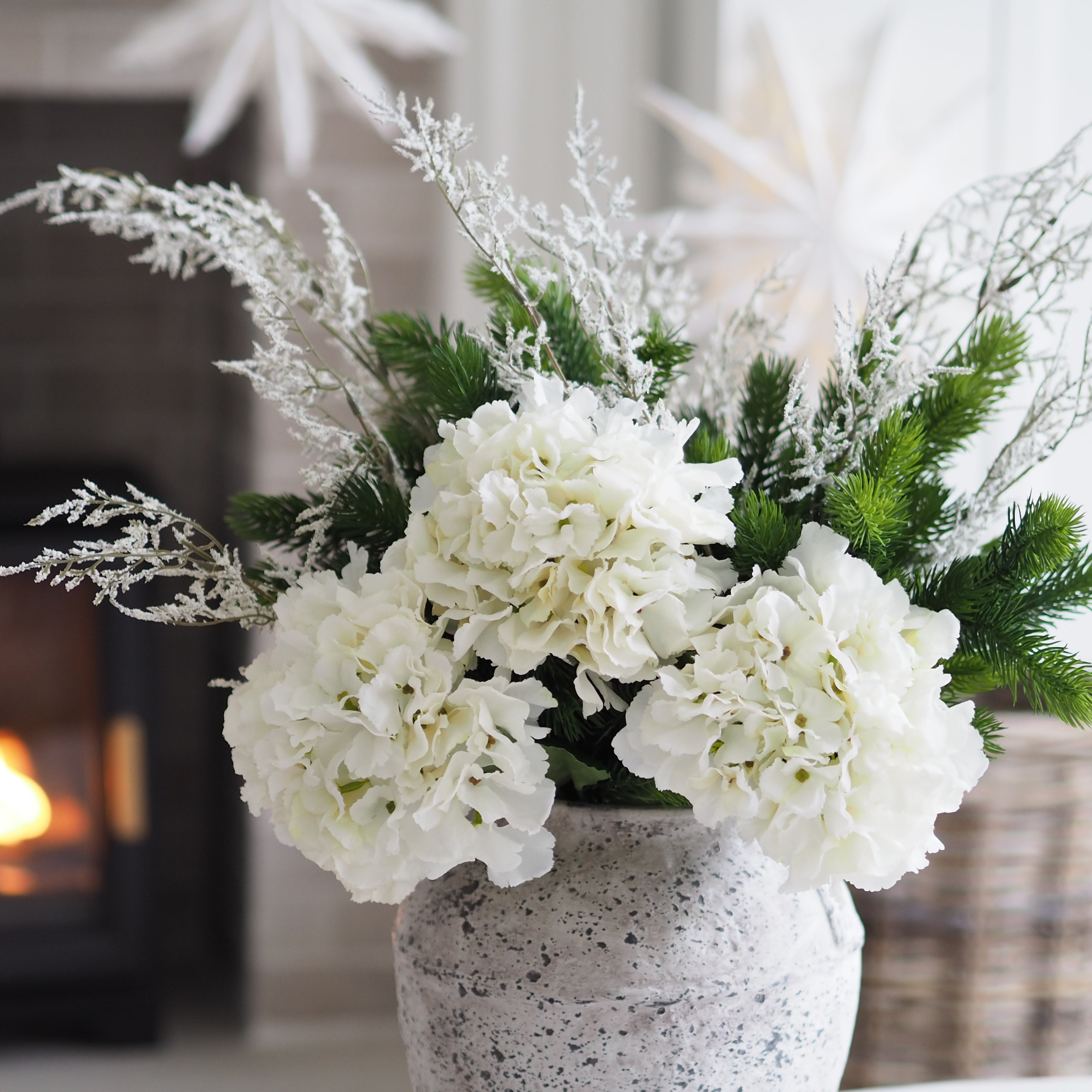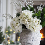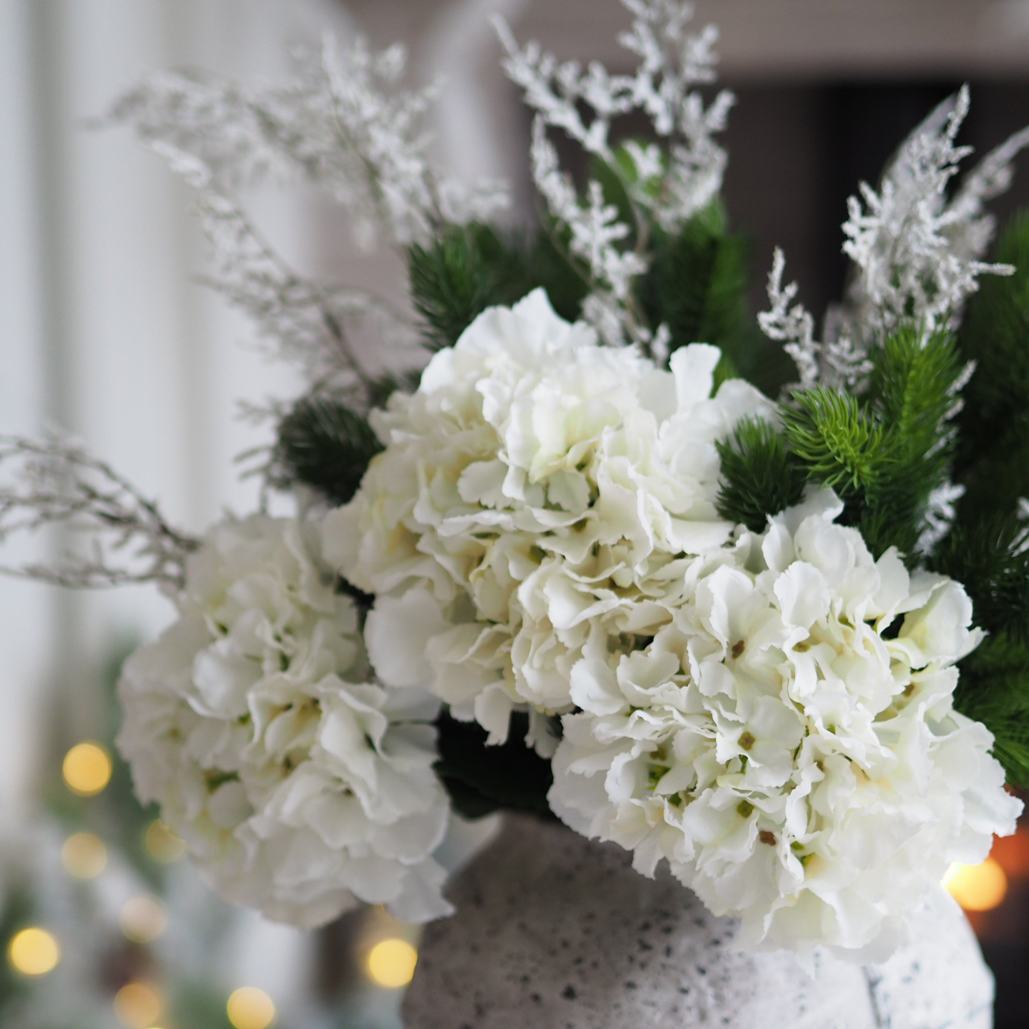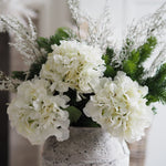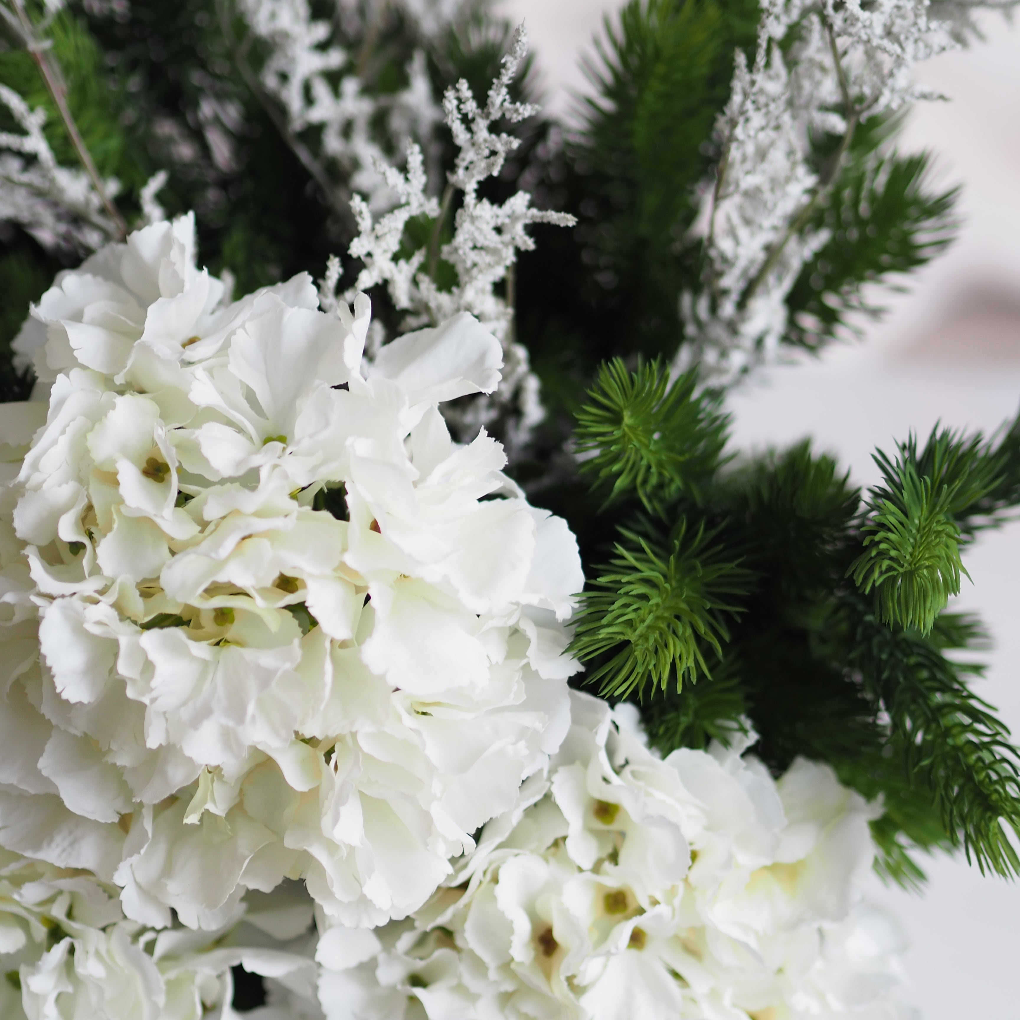 Add a touch of magic to your home this season with our Winter pine & hydrangea bouquet. A combination of beautiful neutrals and festive pine, this bouquet is full of textured blooms and adorned with festive stems.