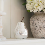 Add a unique touch to any shelf, kitchen or coffee table display with an ornamental ceramic pear. With a stunning silver tone and dimpled metal effect, these pears look fabulous as a stand alone piece or dotted around your home in multiples.