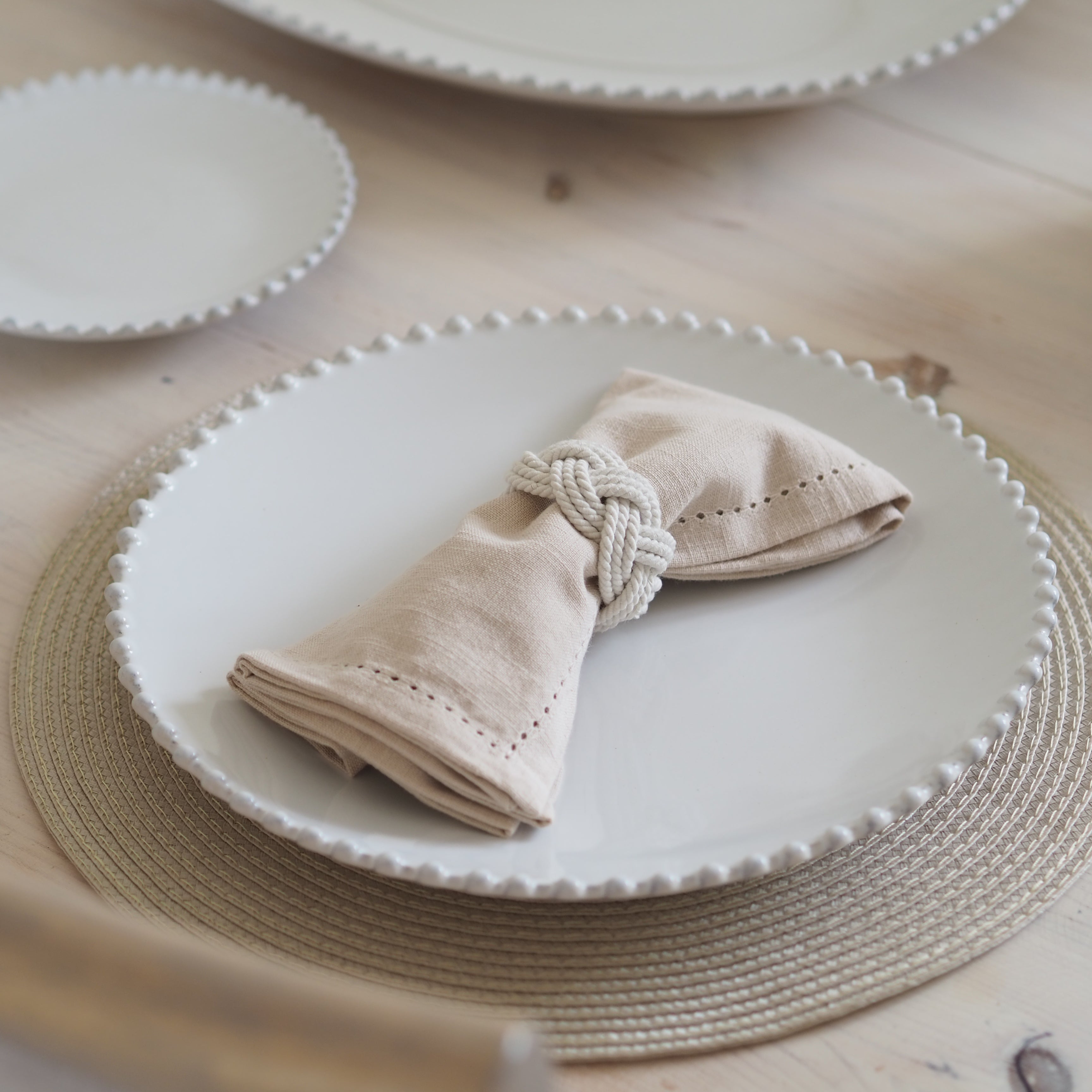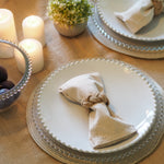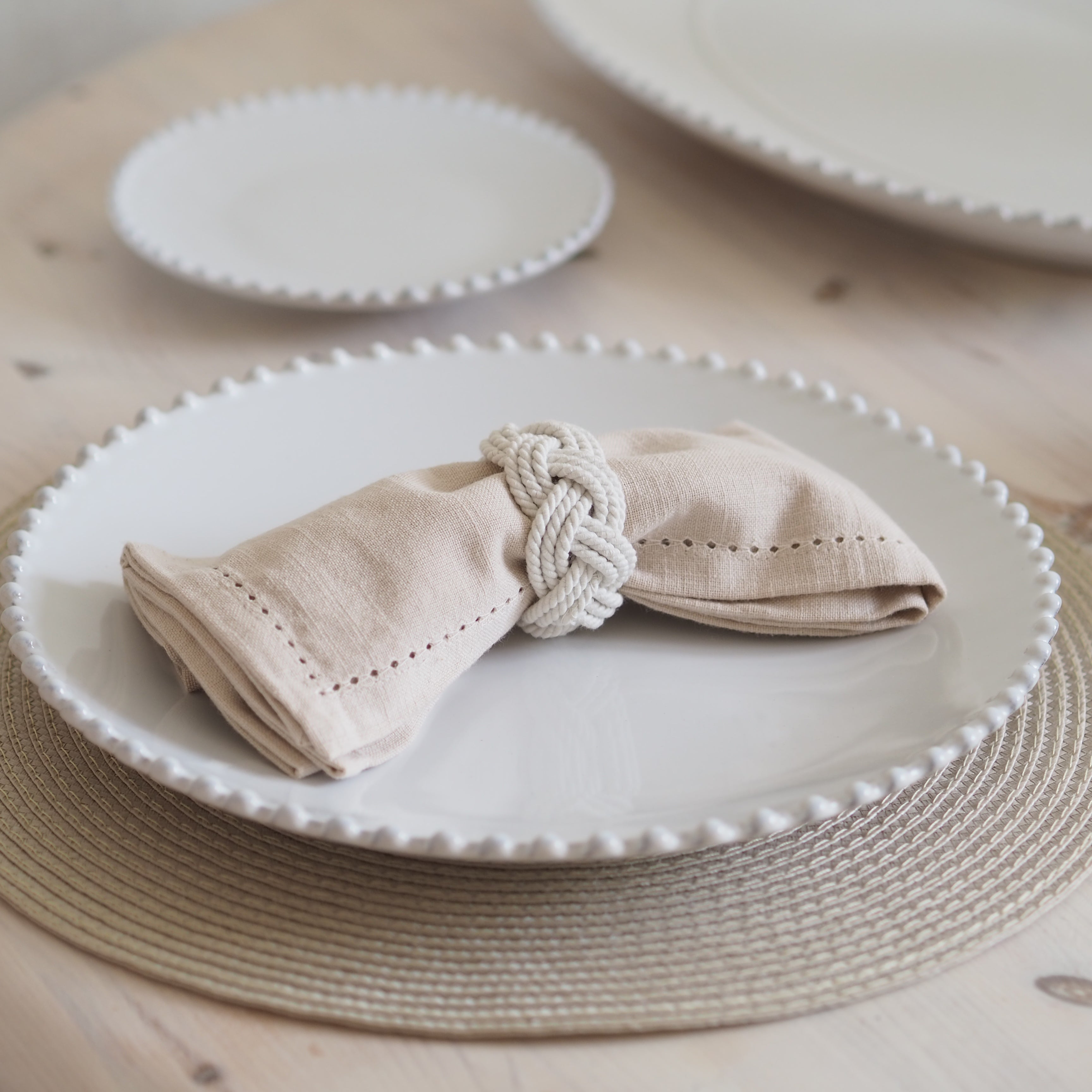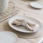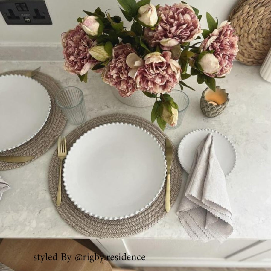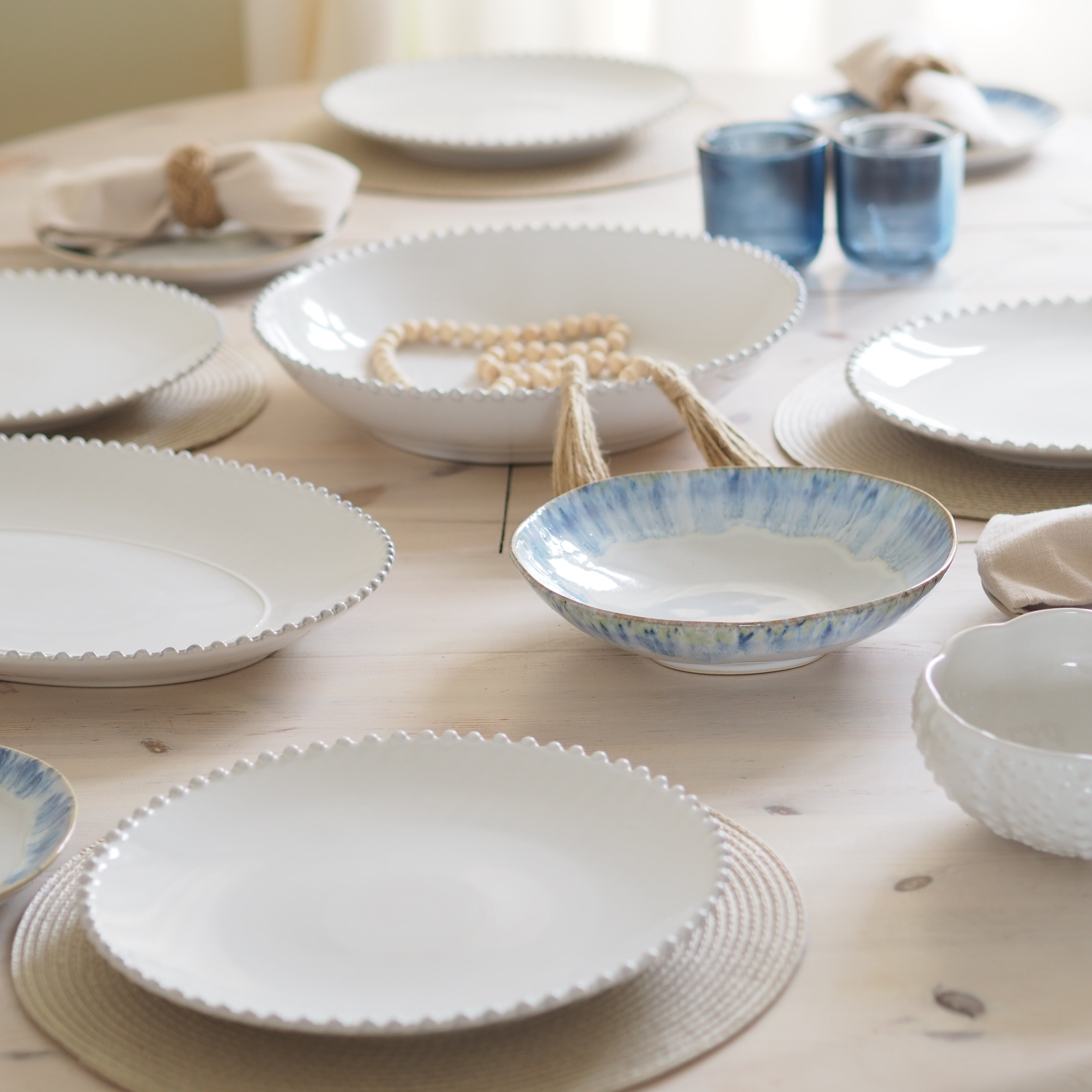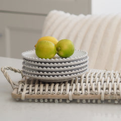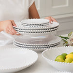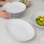 This versatile large, white ceramic plate is a beautiful addition to your serve-ware collection. The stunning pearl detailing showcases the classic white design. Use as a dinner plate or food display plate.