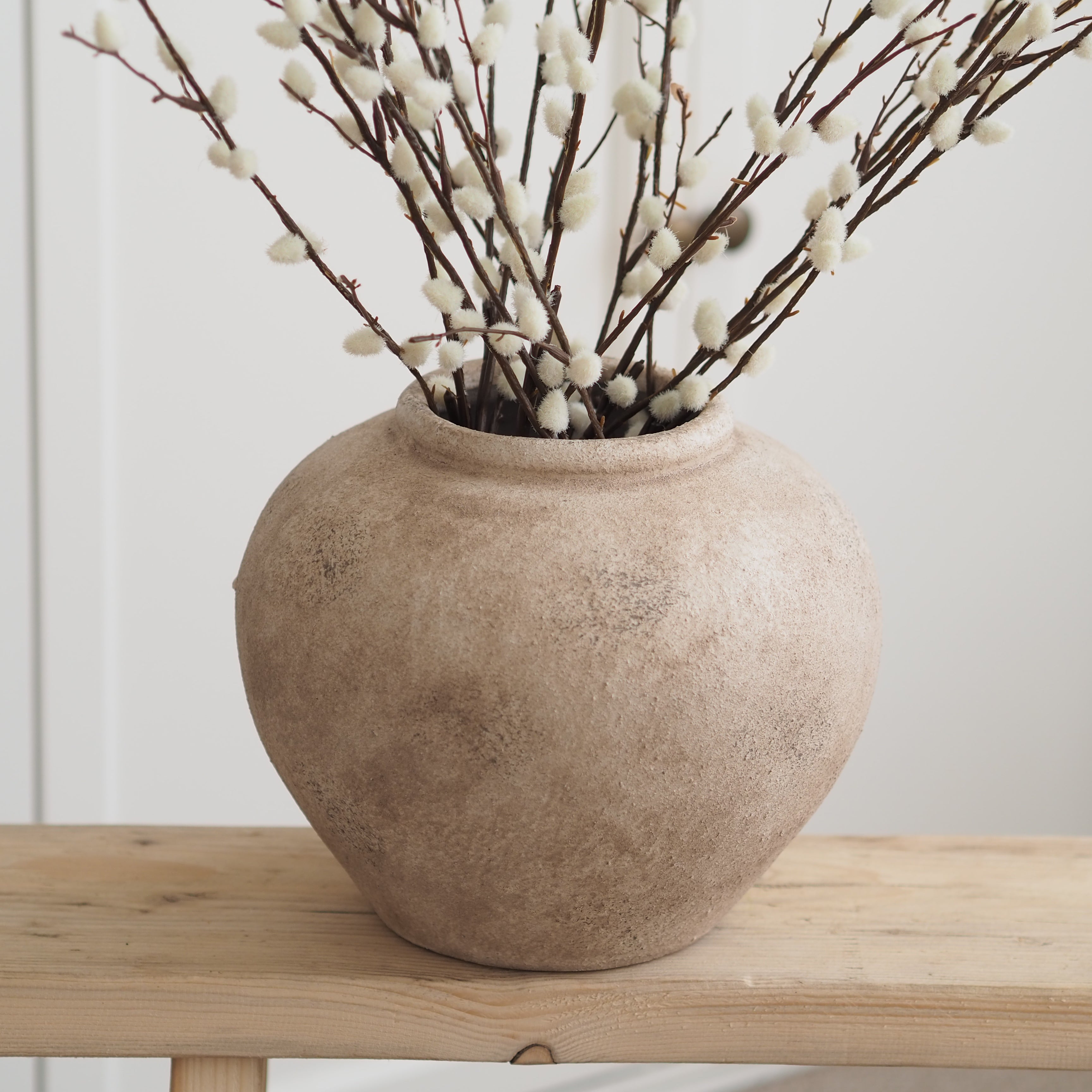 Make a statement with this beautiful taupe distressed ceramic vase. This is a versatile piece of home decor that can complement various styles and colour palettes. The ceramic is finished in a beige distressed style. Pair with your favourite Dot & Blush faux florals for a stylish statement piece for any area of your home.