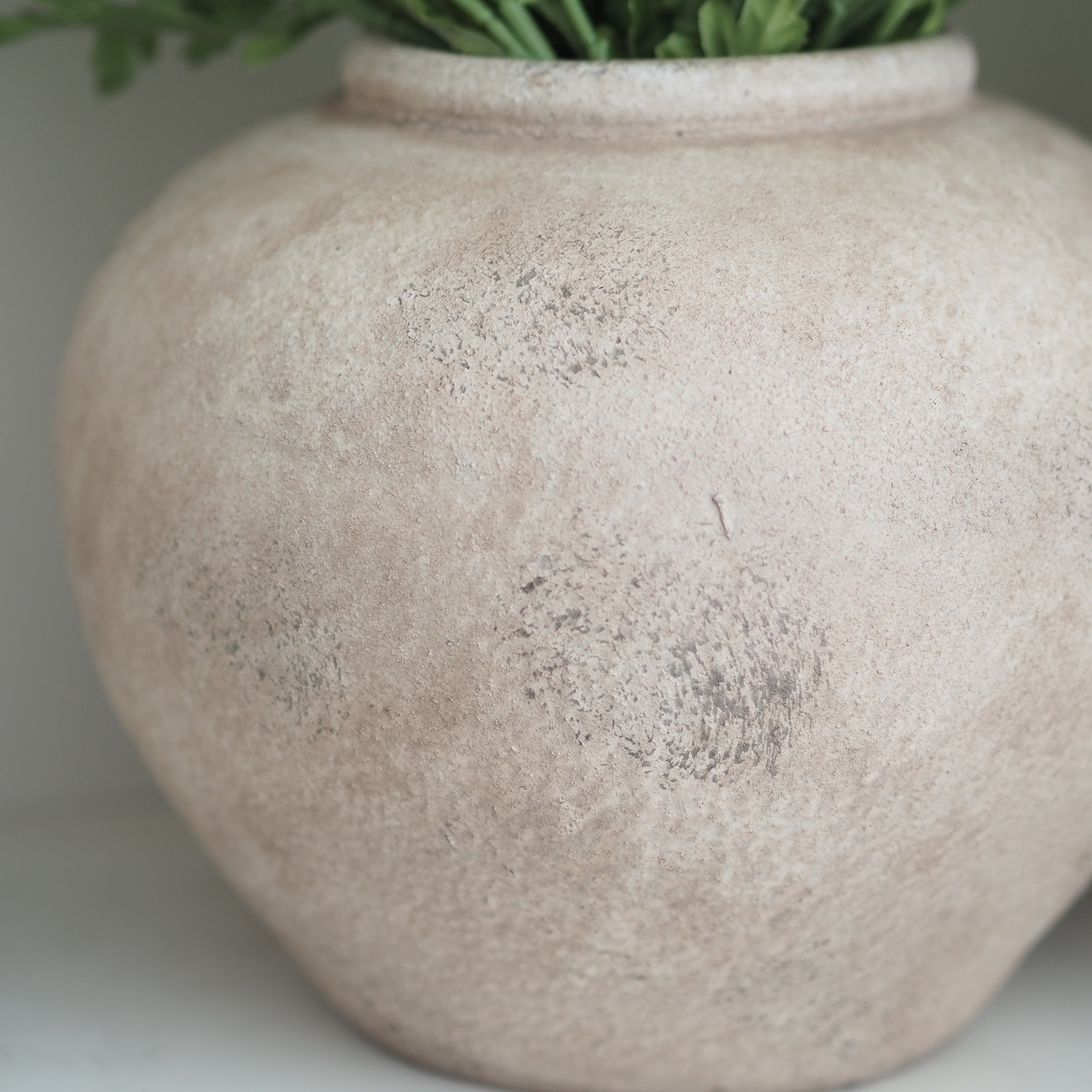 Beige Ceramic Distressed Round Vase