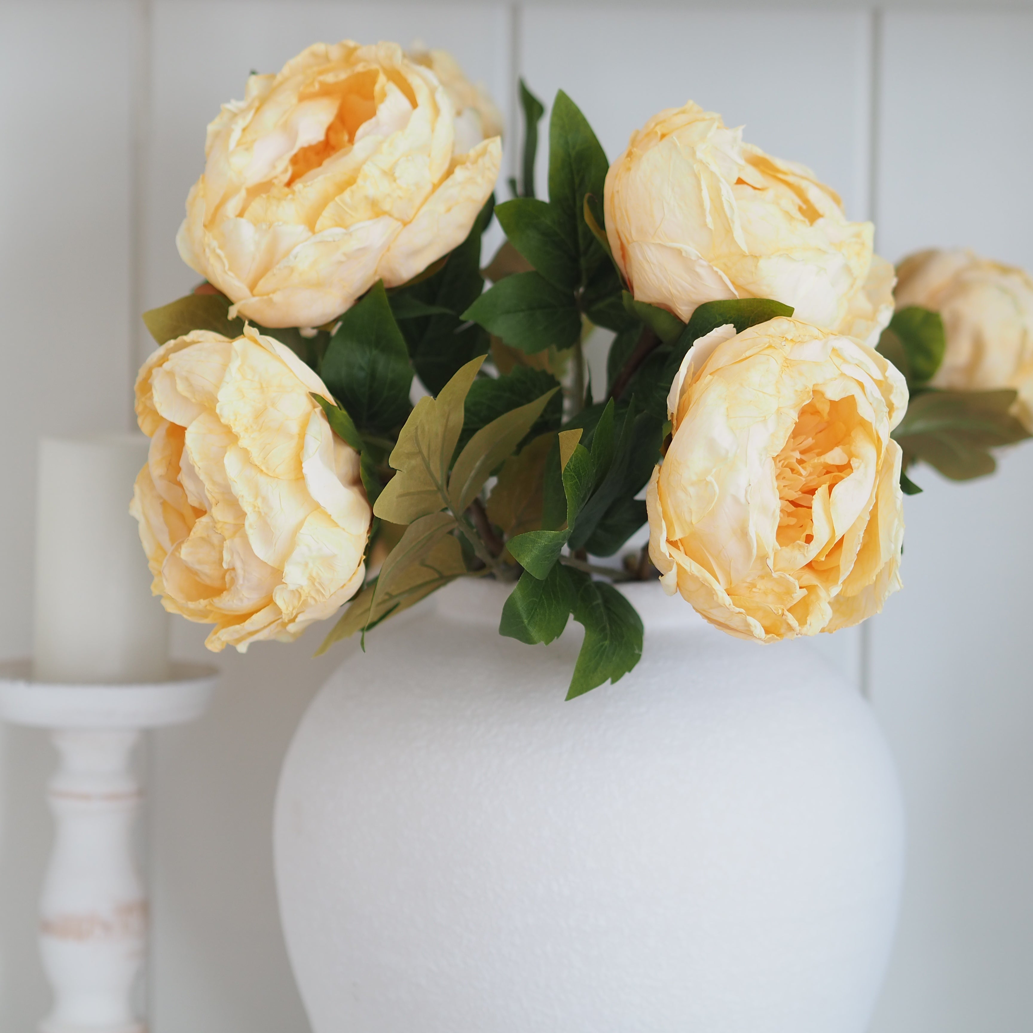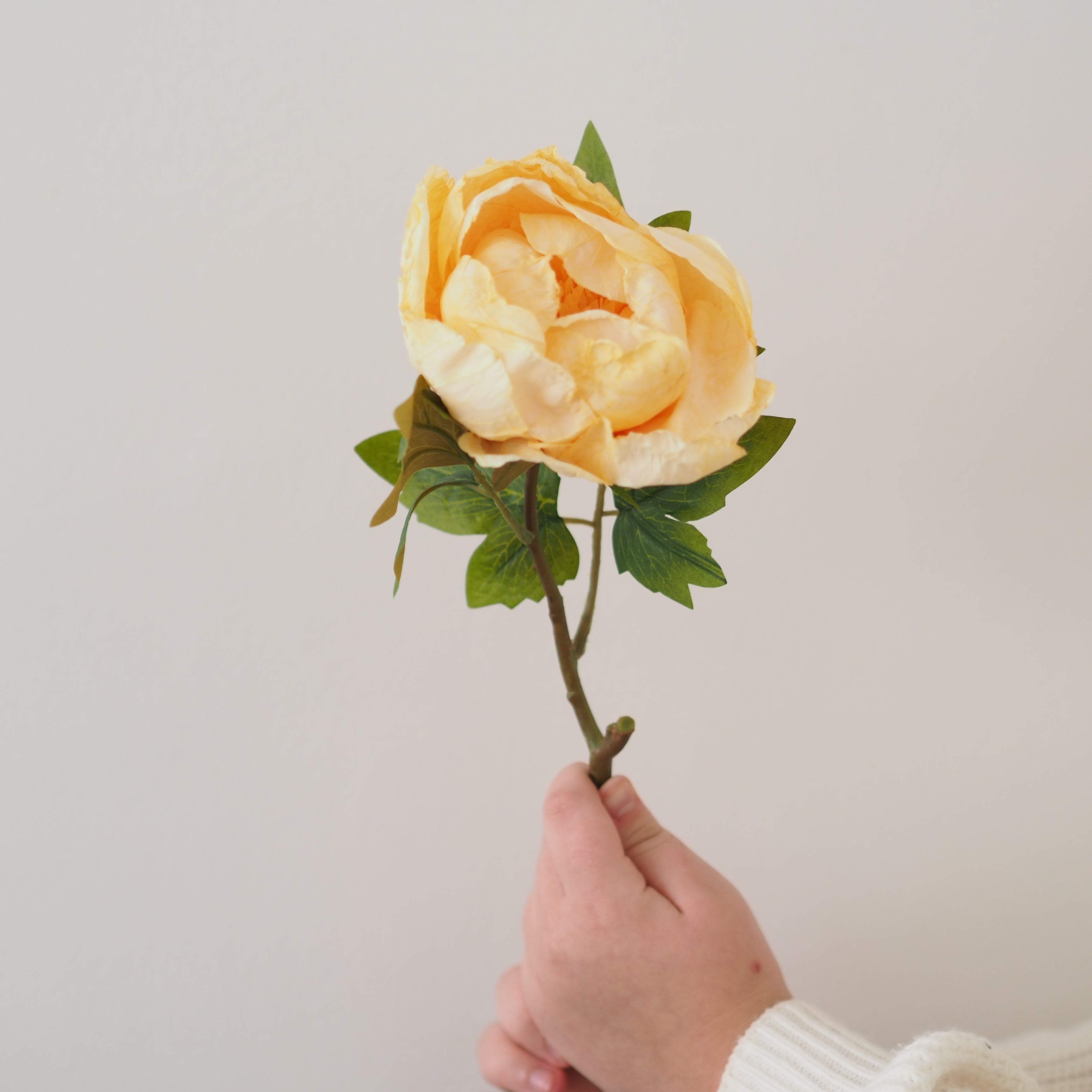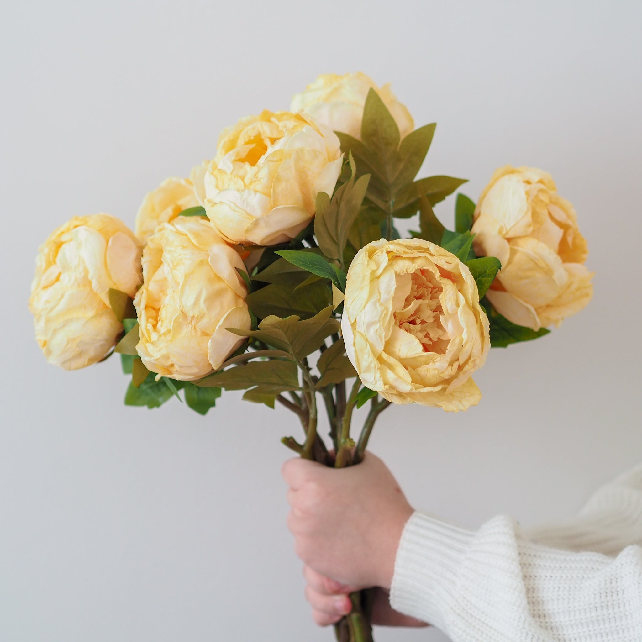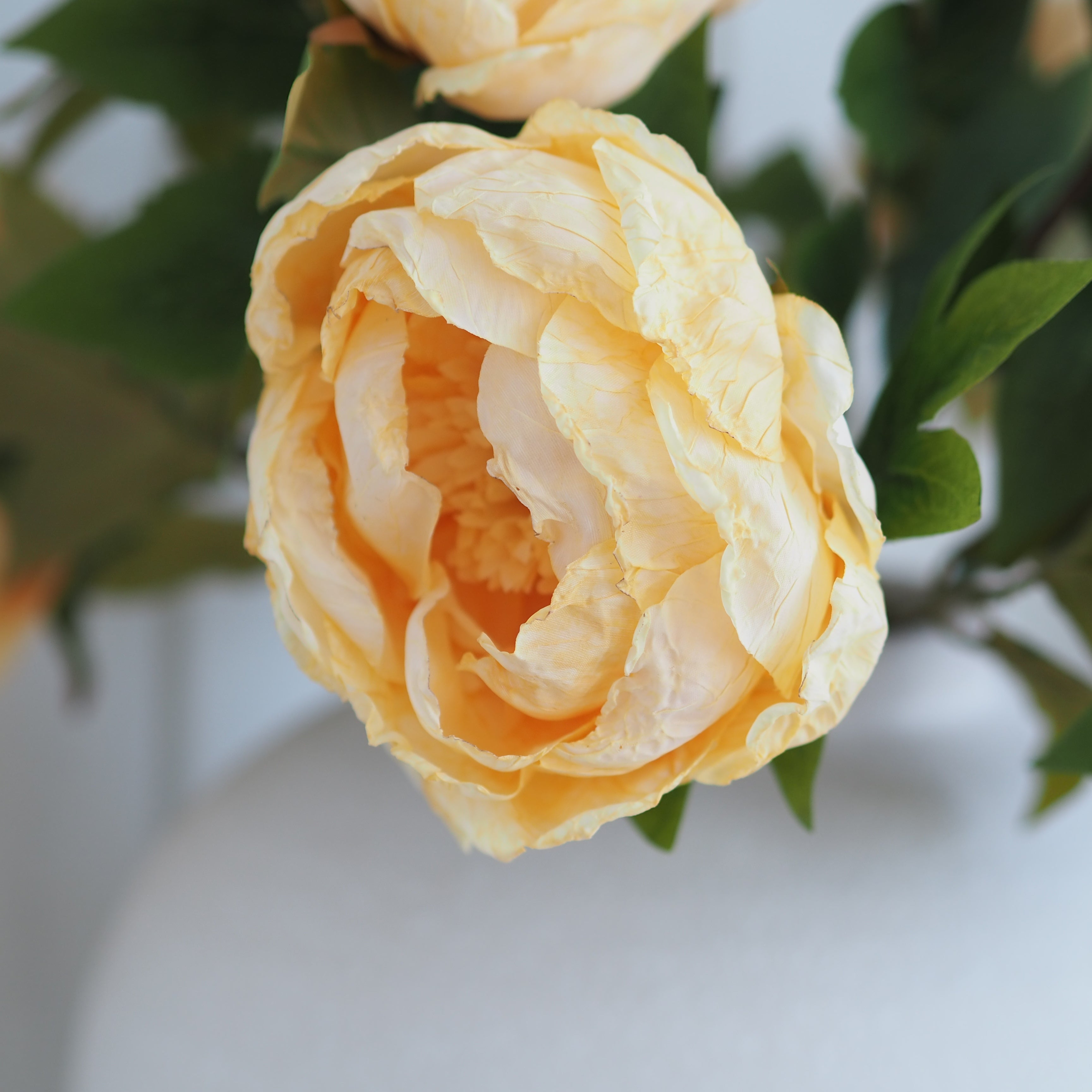 A stunning addition to our faux stem collection, these dried touch butter yellow closed peony stems are perfect for creating a dramatic floral display in your home. The heads are frilled with beautiful detailed petals and ultra realistic leaves, designed to look like they have been air-dried. Style in your favourite vase in multiples for a stunning display.