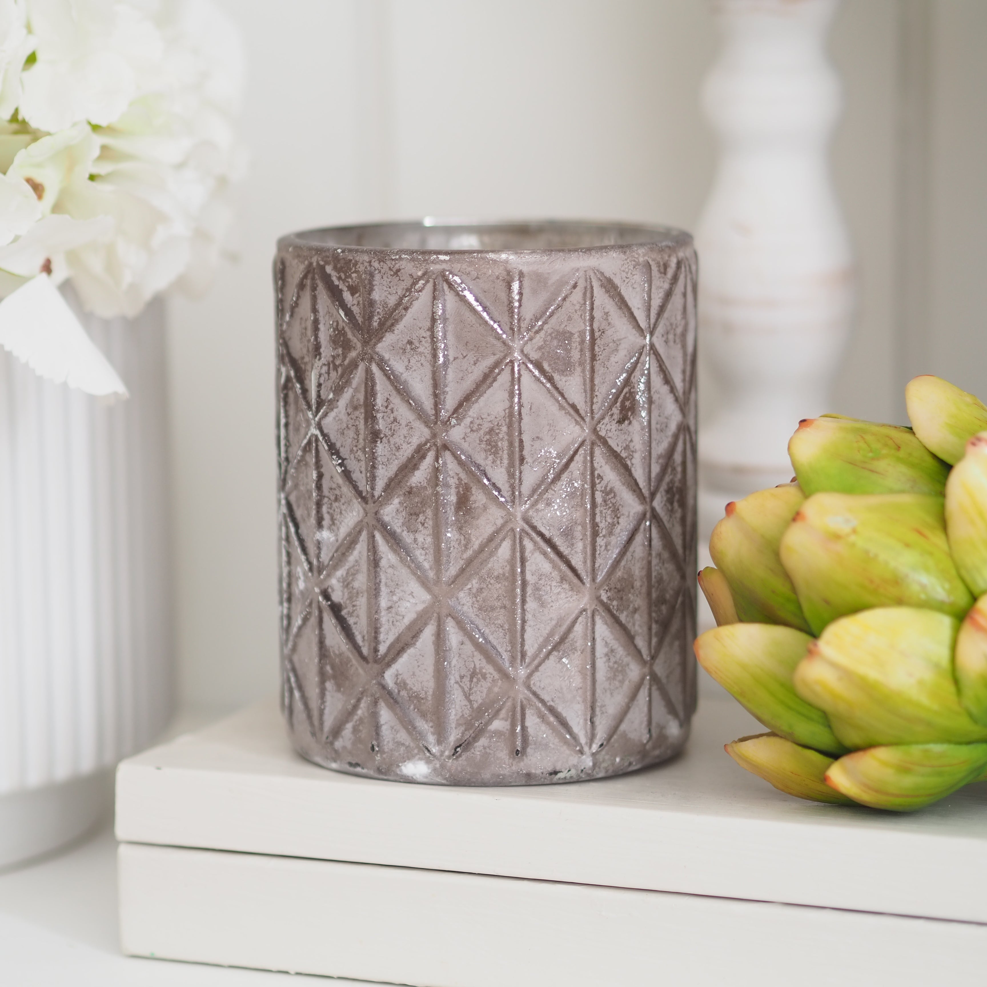 A stunning addition to your home decor, this taupe candle holder is perfect for styling on your shelves, table or favourite tray. Adds interest to any space, use as a candle holder or pot.
