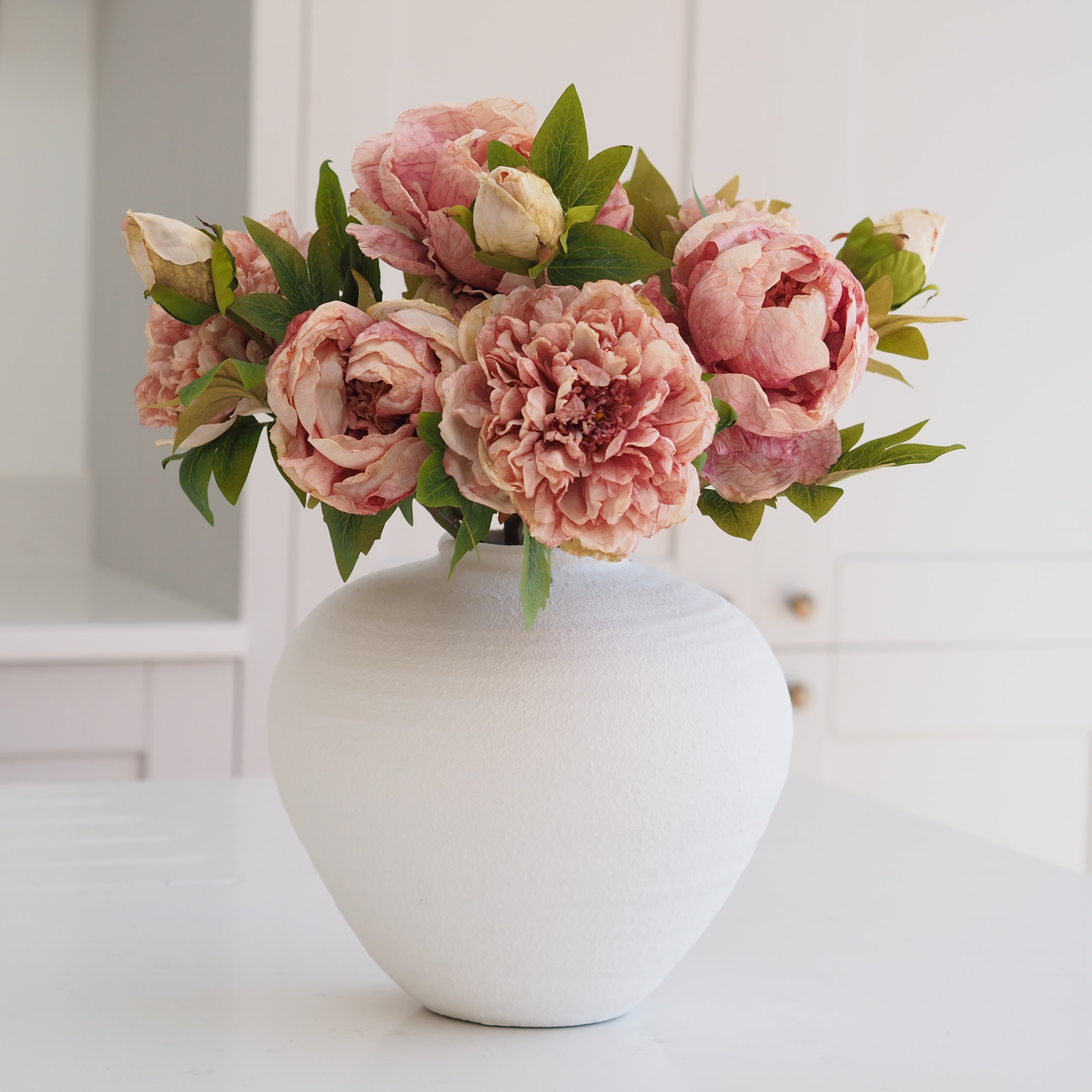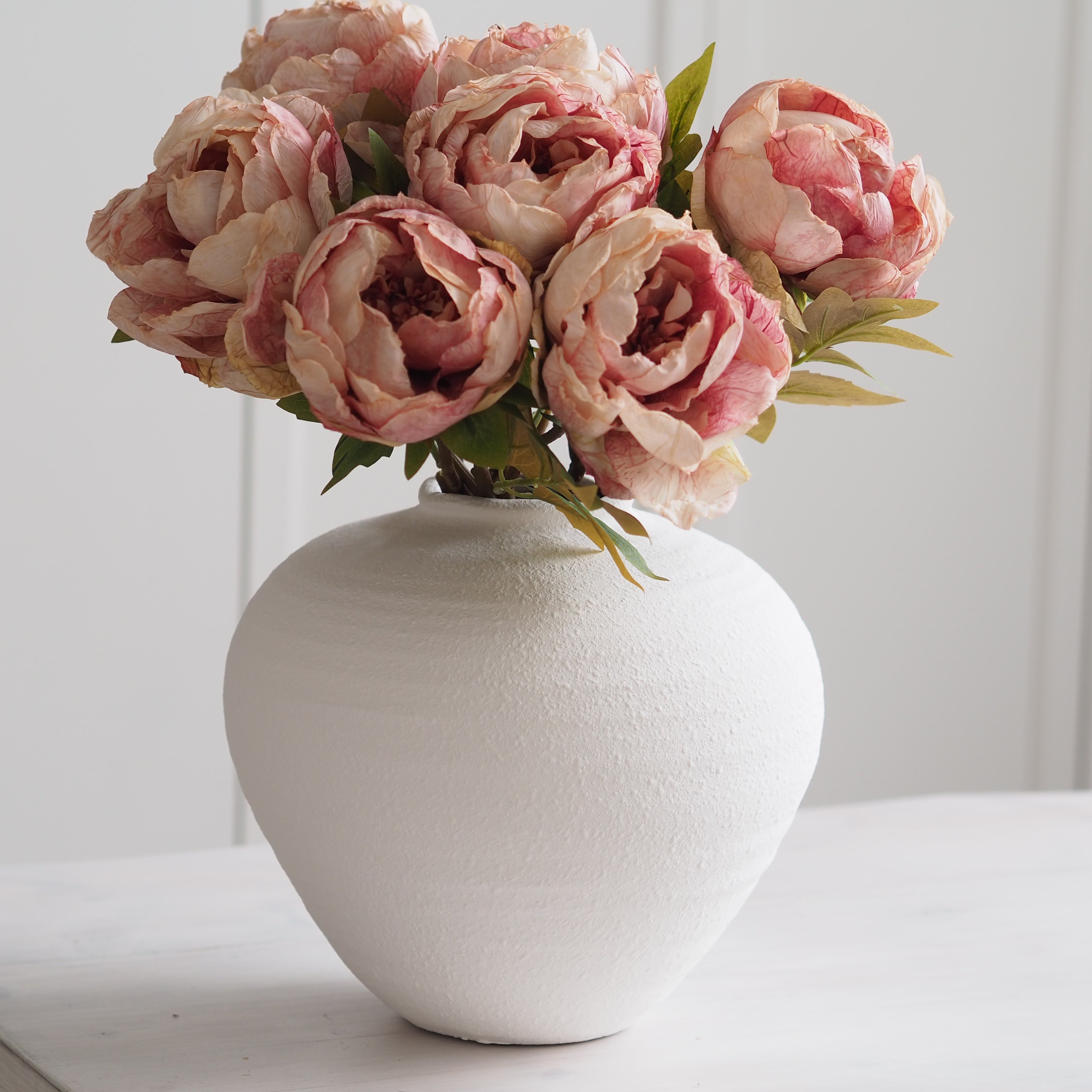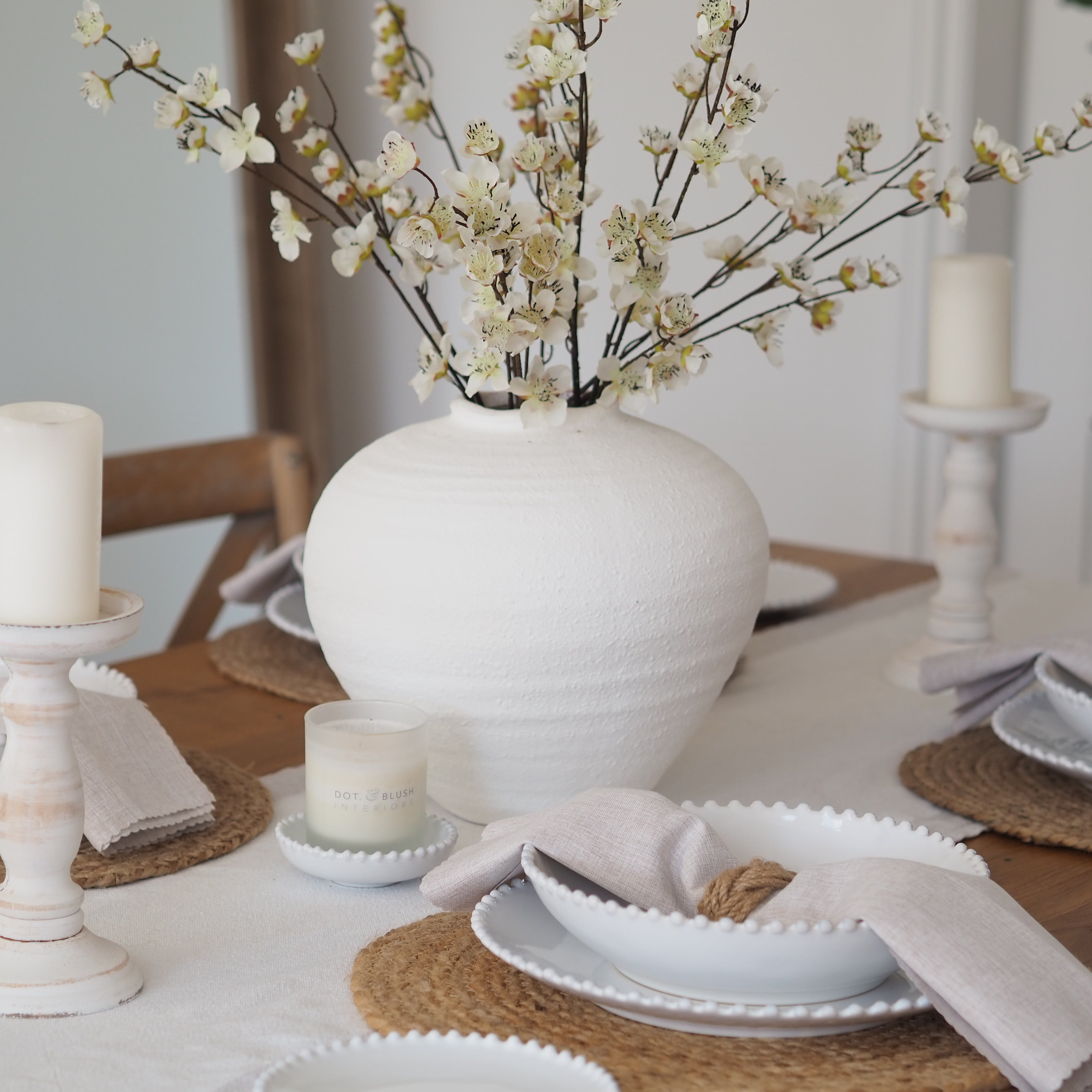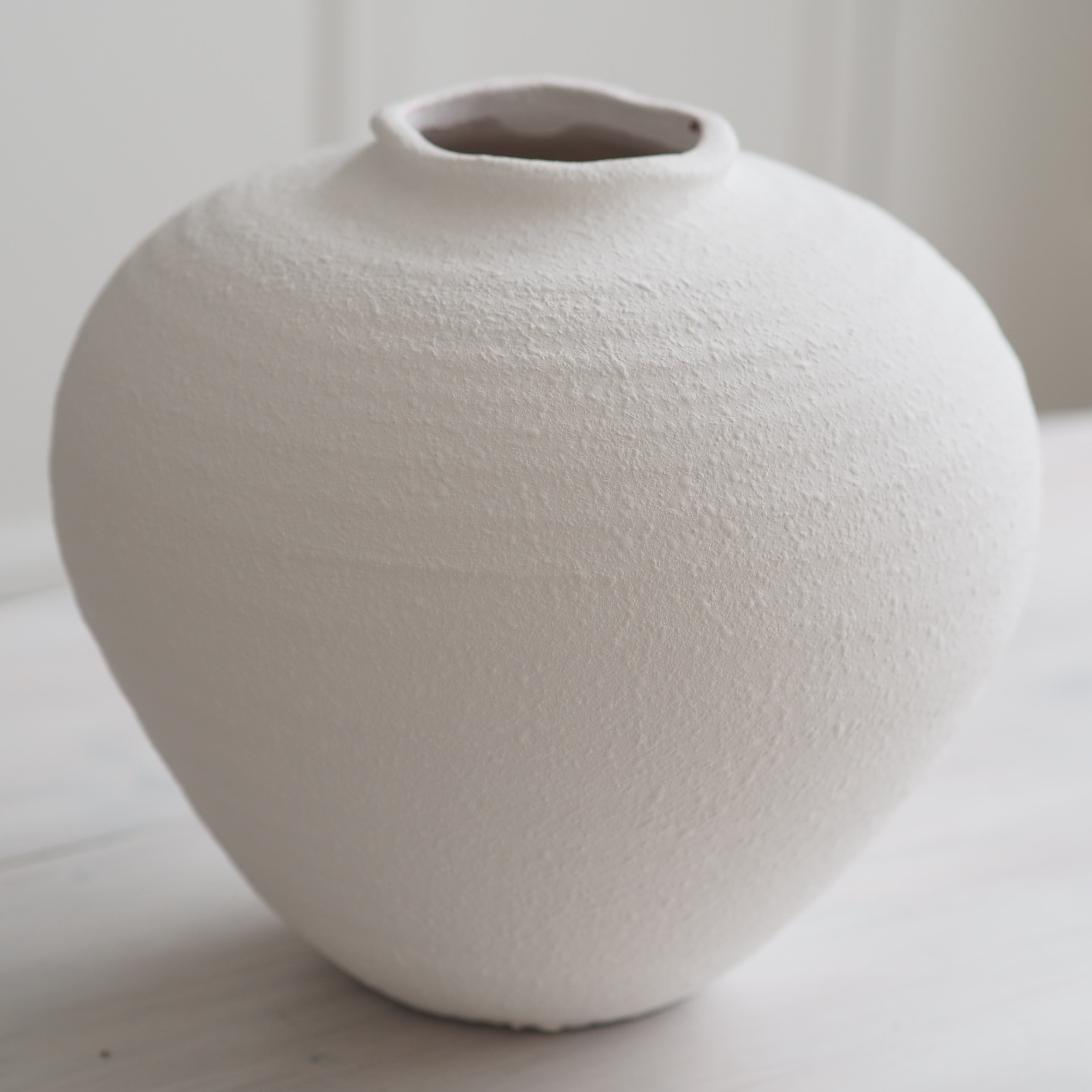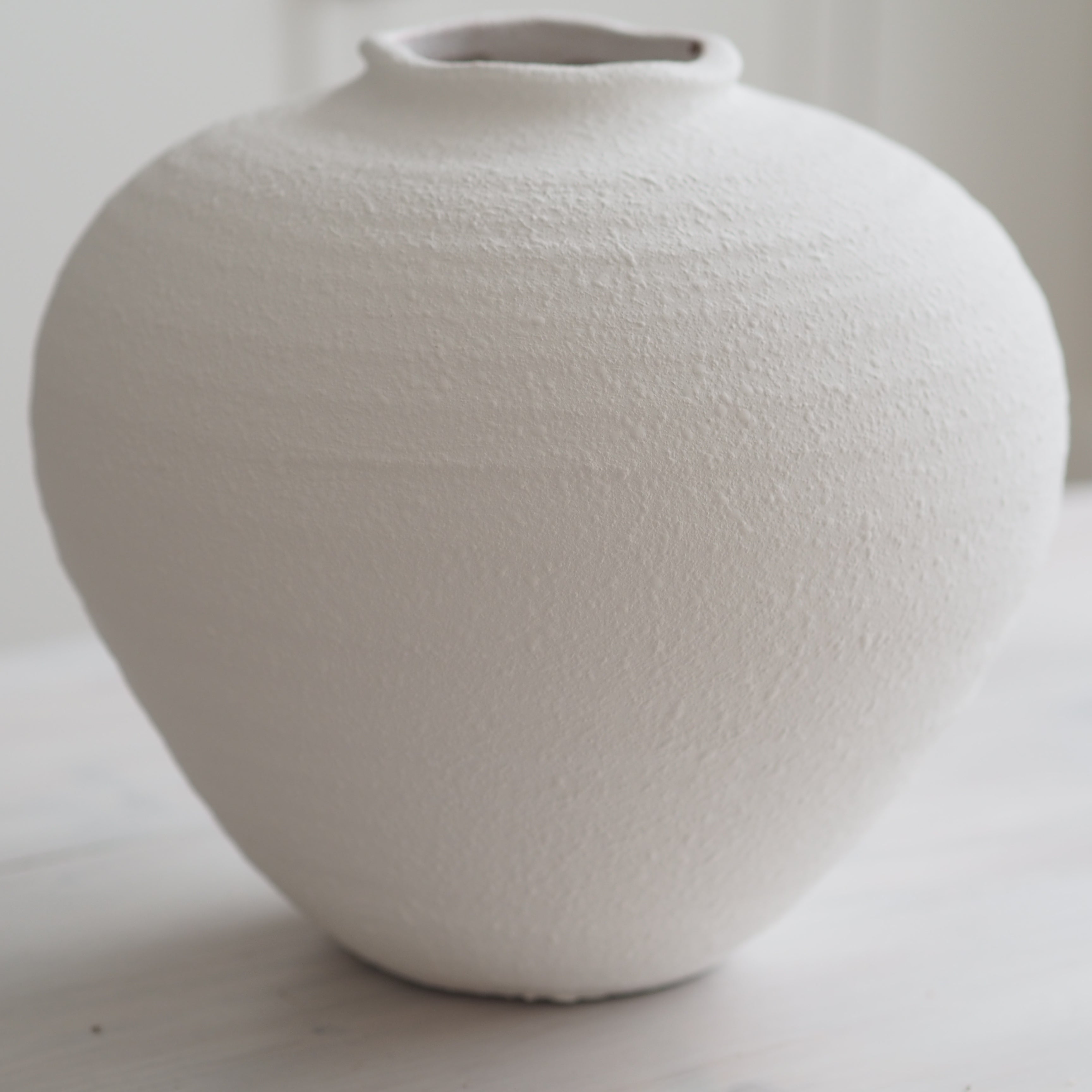 The perfect statement piece. This matte textured white vase is a wonderfully earthy and neutral piece with an eye-catching design that is both timeless yet modern. With stunning naturally occurring texture, this beautiful vase will add texture and depth to any space. The waved edge opening adds a unique touch and is perfect for accommodating your favourite Dot & Blush bouquets and stems.