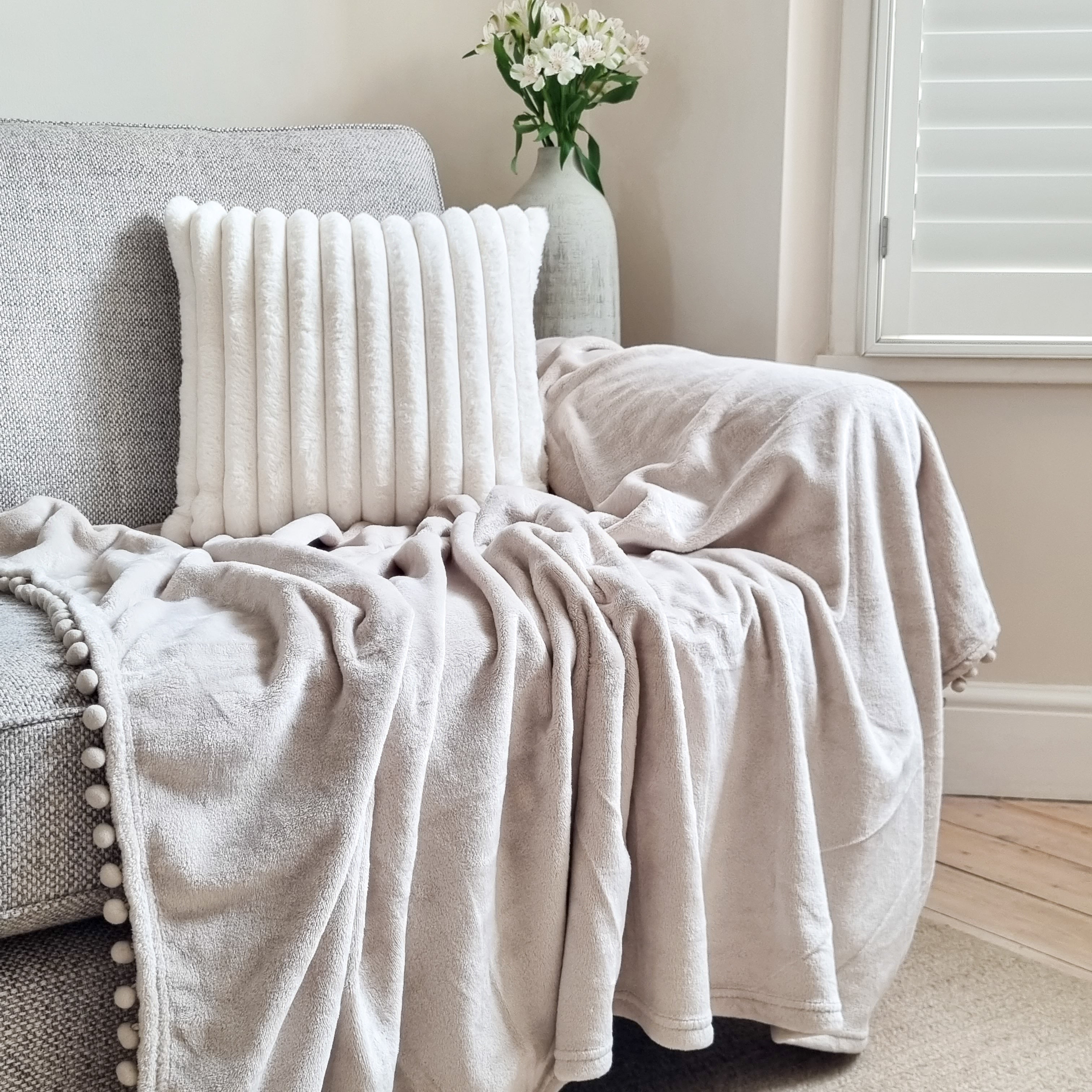 Agregue un toque de comodidad y estilo a su espacio con esta lujosa manta de vellón suave como cachemira.