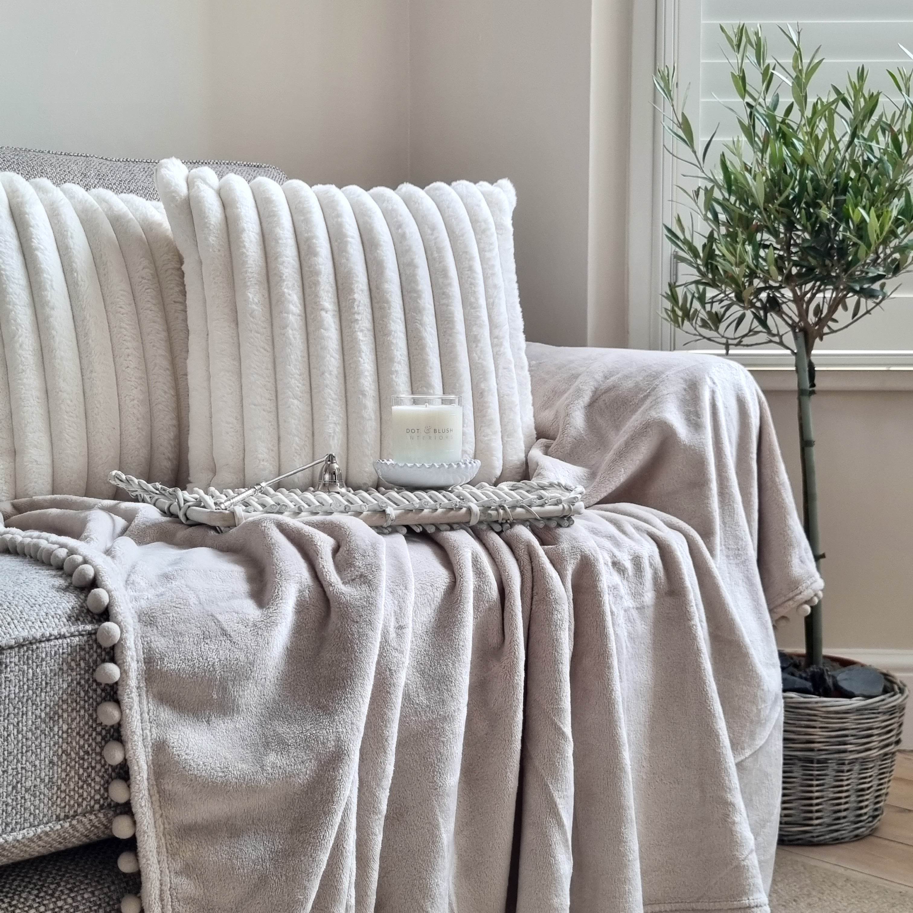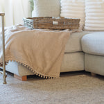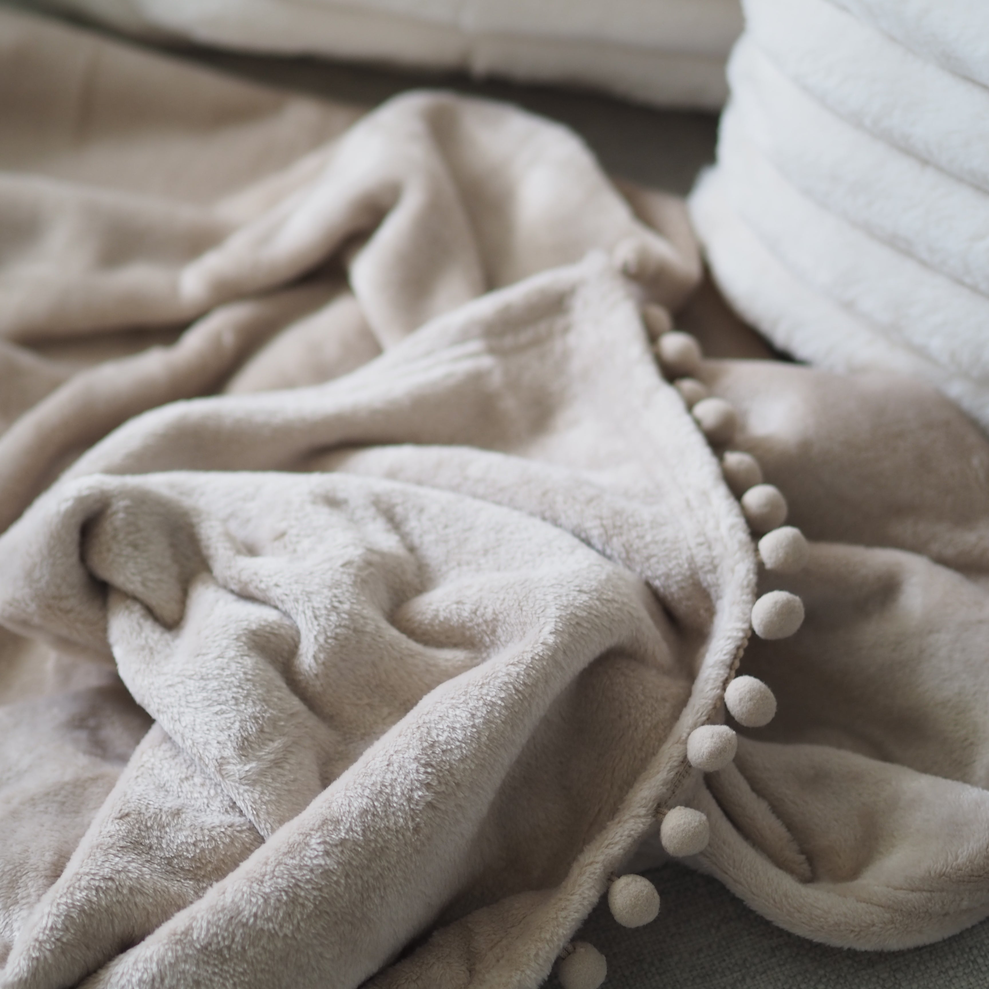 La manera perfecta de crear un ambiente acogedor en tu dormitorio o salón. El beige con toques de cachemira es el tono neutro perfecto para tu hogar. El bonito ribete trenzado con pompones le da un toque de glamour. Perfecto para tardes acogedoras.