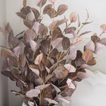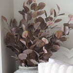 8 tallos grandes de eucalipto dólar de plata de imitación burdeos