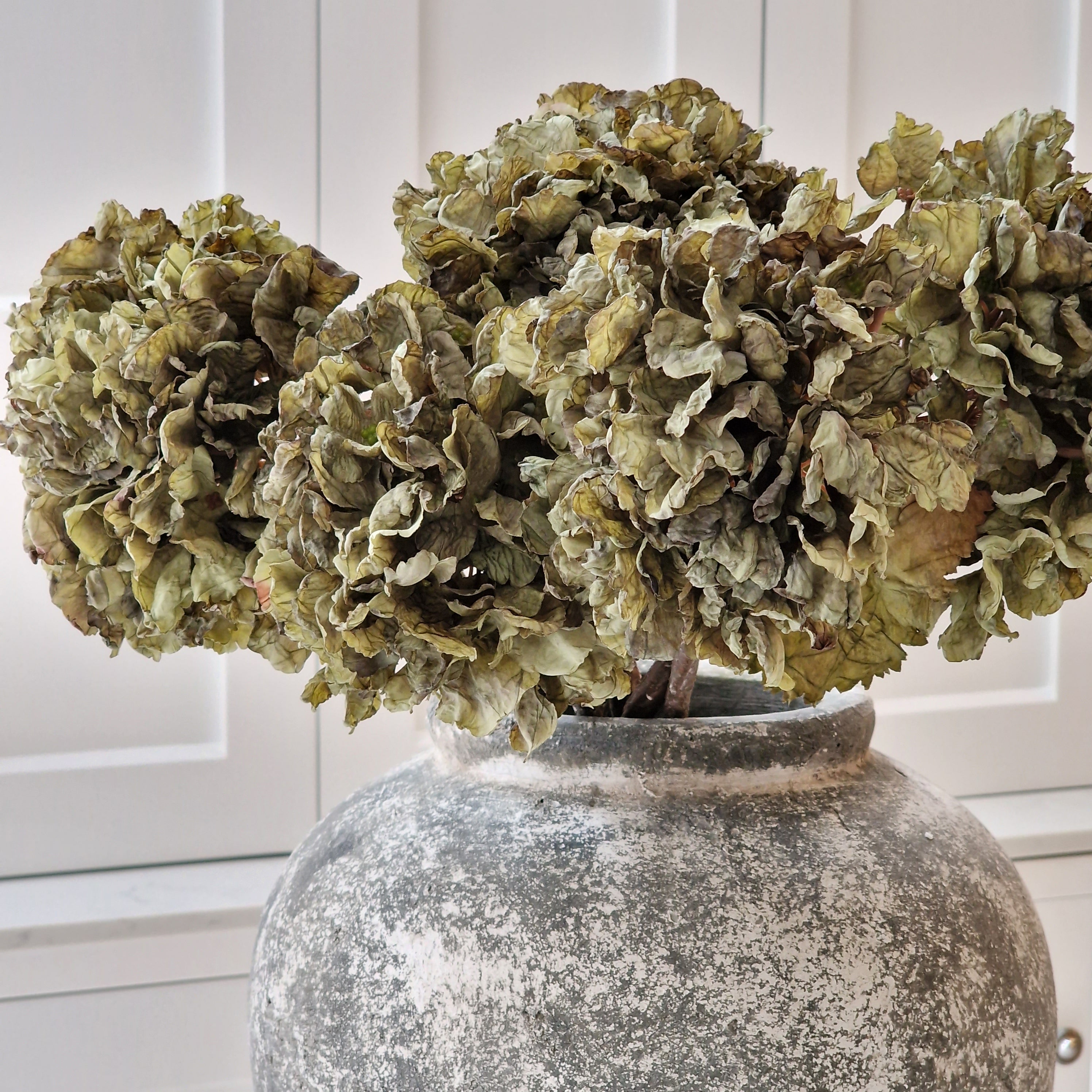 Una impresionante adición a nuestra colección de tallos artificiales, estas hortensias verdes secas al tacto son perfectas para crear un arreglo floral espectacular en tu hogar. Las cabezas están adornadas con hermosos pétalos y hojas detalladas y están diseñadas para que parezcan secadas al aire. Colócalas en tu jarrón favorito en varias unidades para una presentación espectacular.