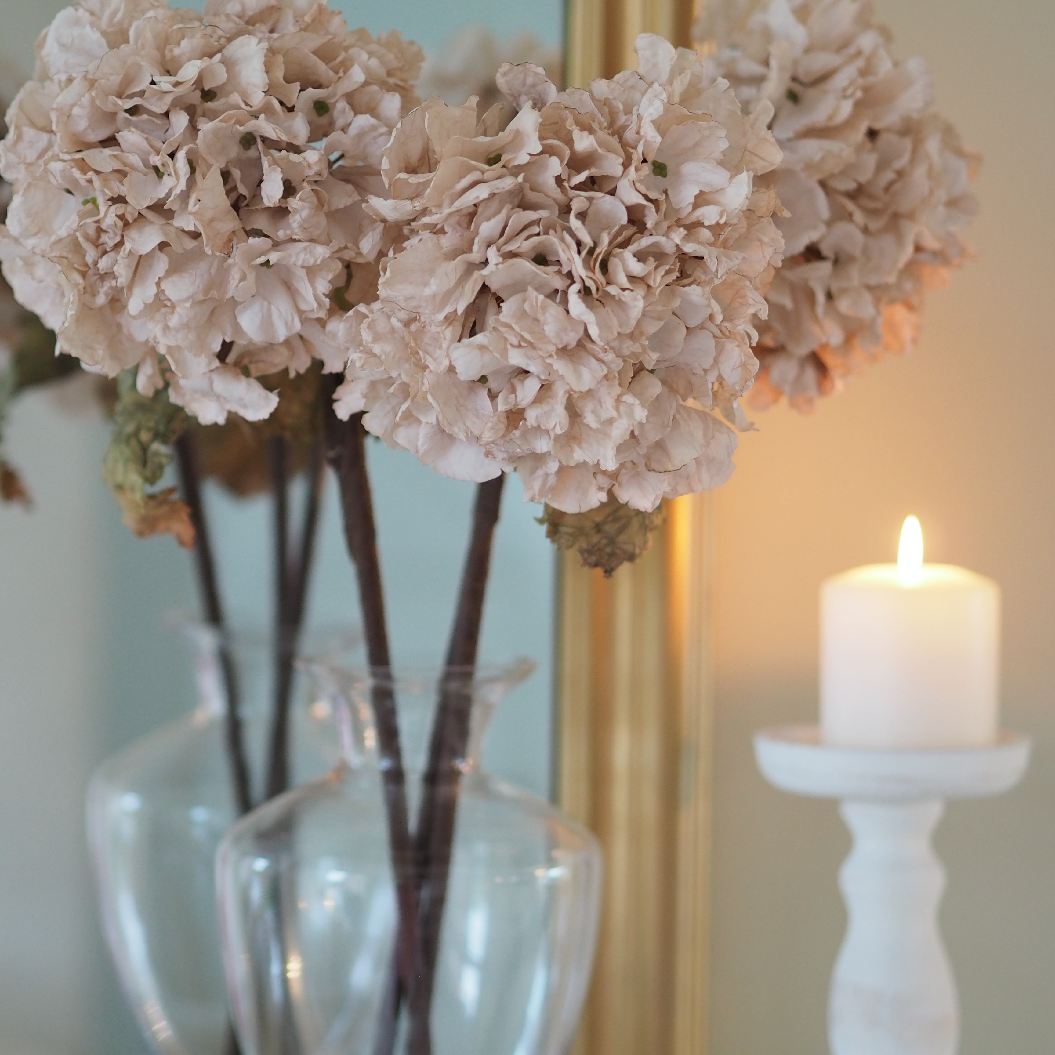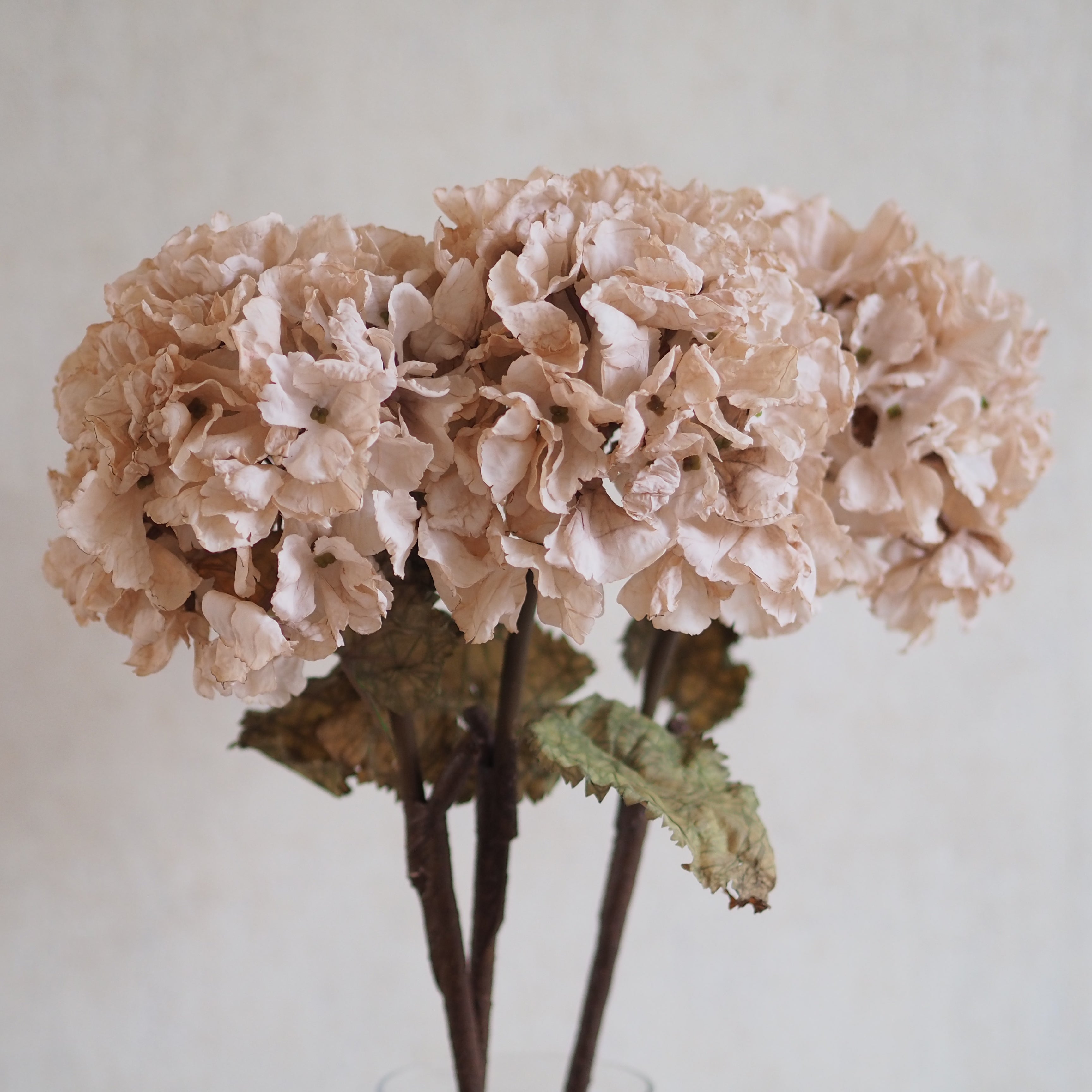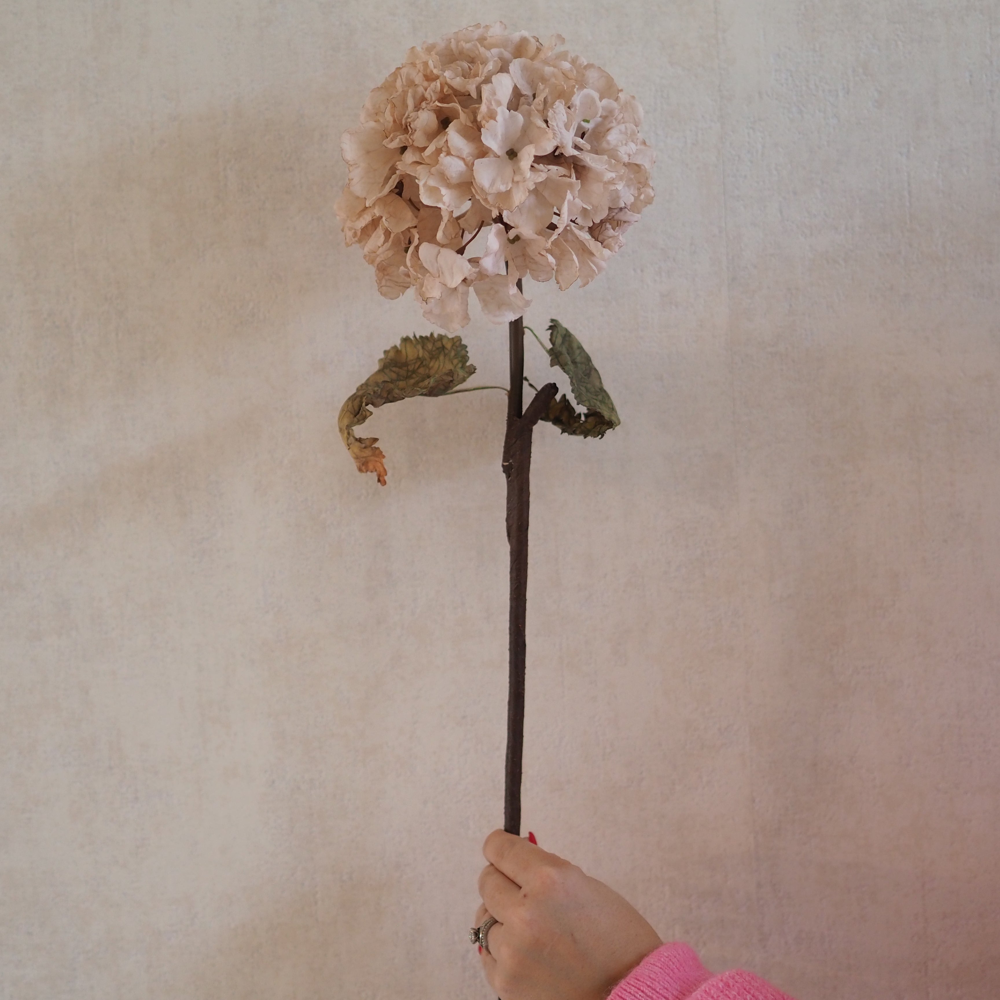 Una impresionante adición a nuestra colección de tallos artificiales, estas hortensias secas de color neutro ruborizado son perfectas para crear un arreglo floral espectacular en tu hogar. Las cabezas están adornadas con hermosos pétalos y hojas detalladas , y su diseño imita el secado al aire . Colócalas en tu jarrón favorito en varias unidades para una presentación espectacular.