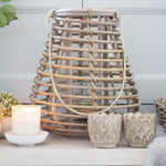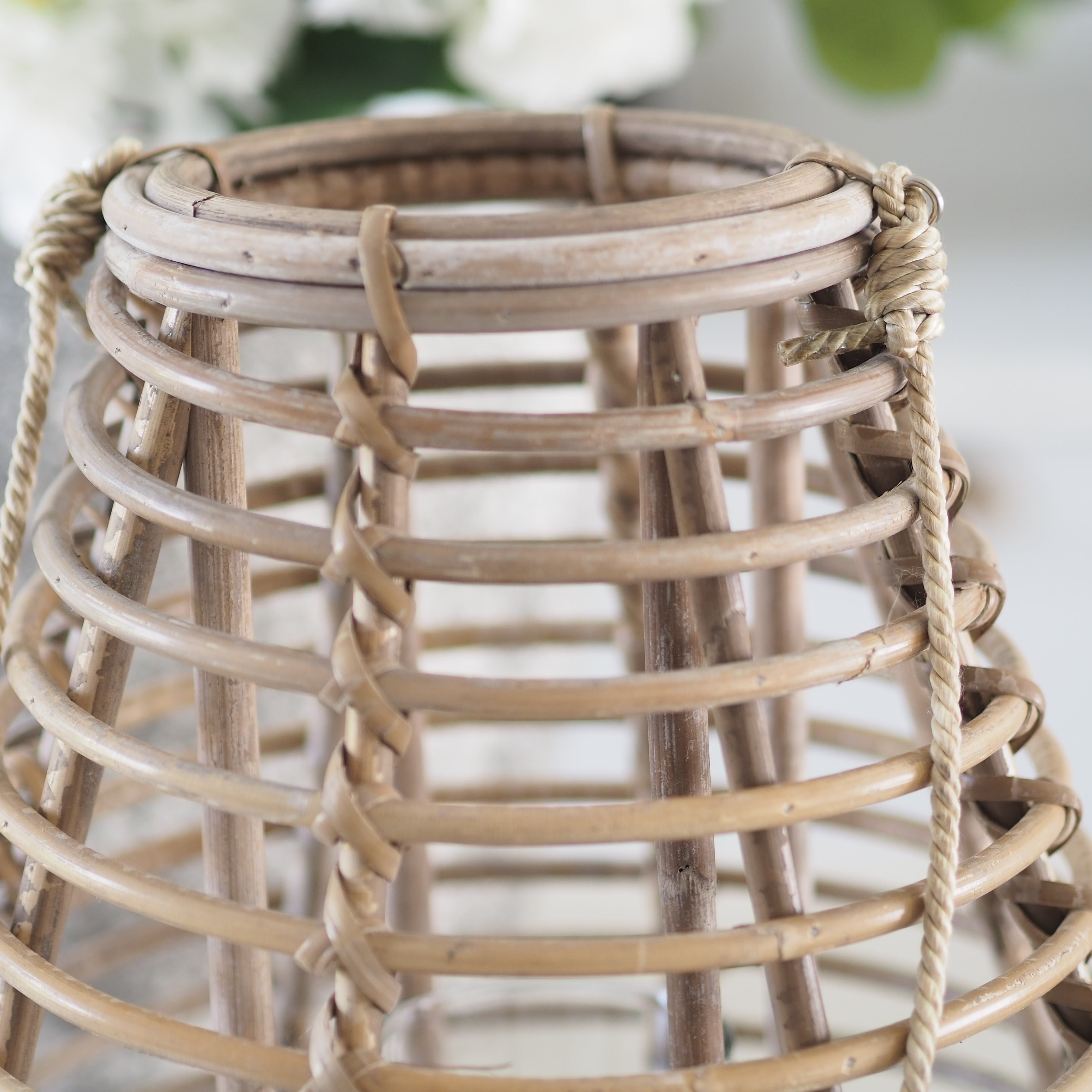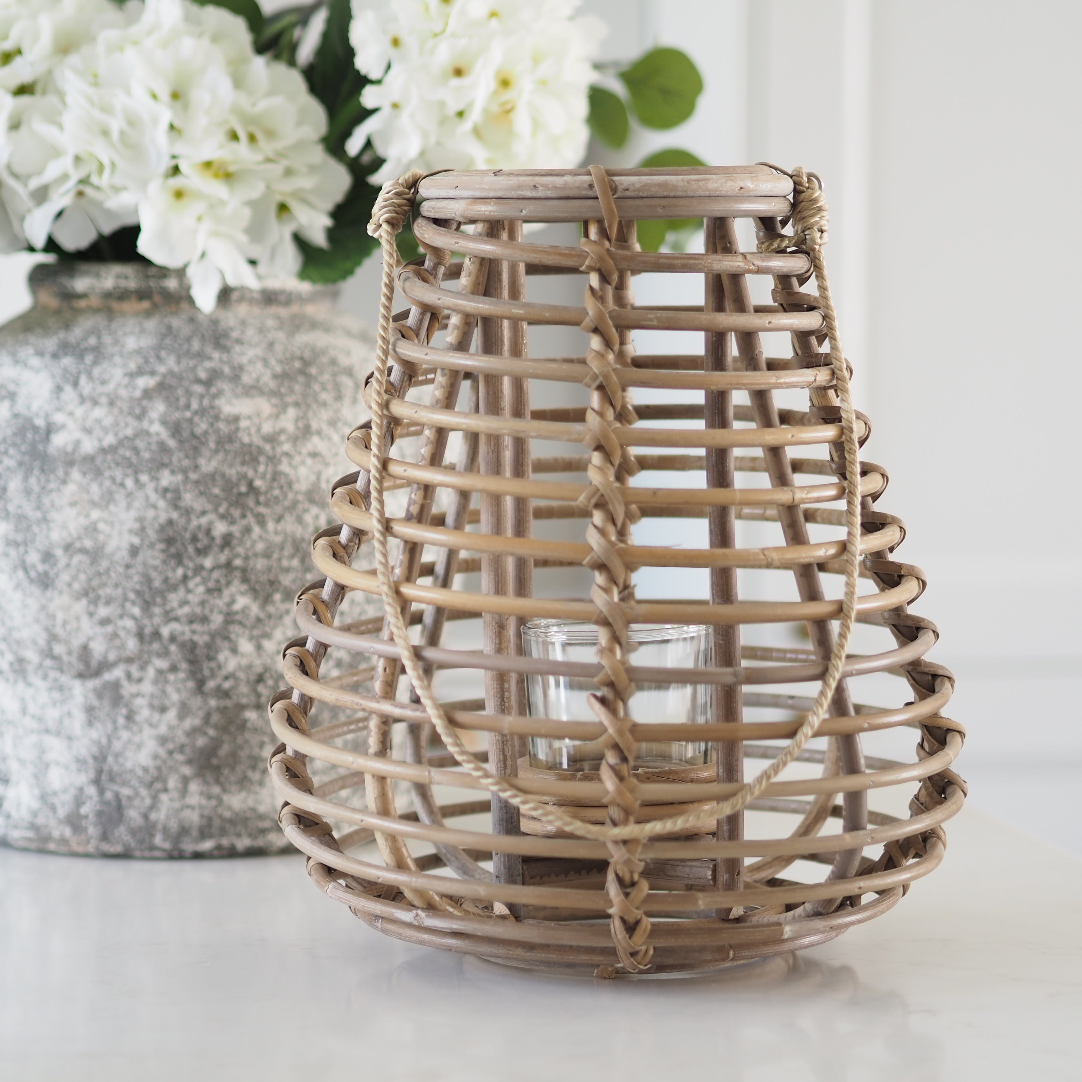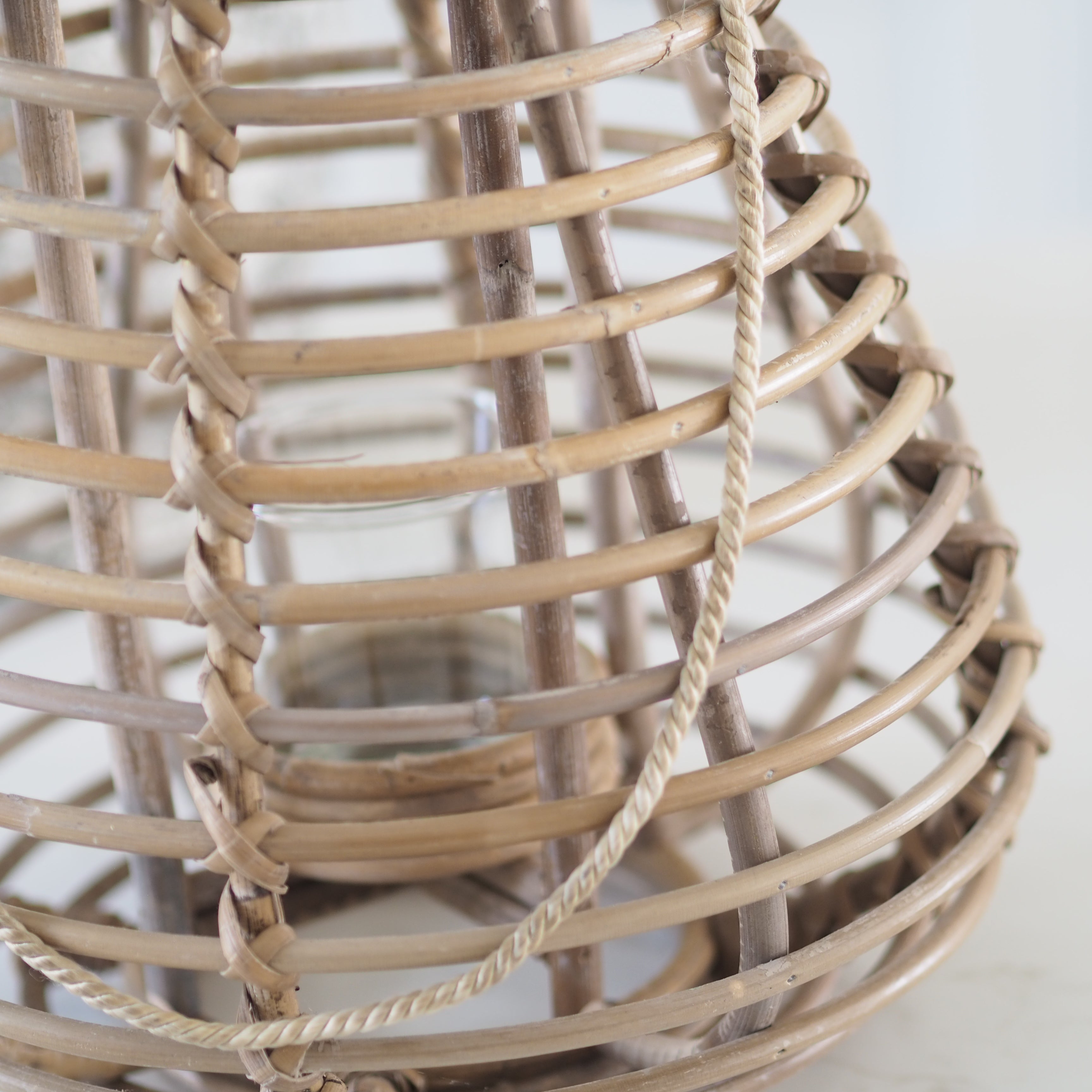 Dale un toque de ambiente a tu hogar o jardín con este farol rústico de mimbre con forma de lágrima. Coloca una vela de pilar, luces de hadas parpadeantes o una simple vela de té en su interior para crear un ambiente cálido y acogedor.