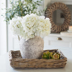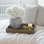 La manera perfecta de exhibir tus accesorios favoritos para el hogar. Esta hermosa bandeja de exhibición está hecha de ratán tejido con acabado antiguo y tiene una forma rectangular clásica. Nuestra bandeja rústica y natural es perfecta para darle un toque rústico y acogedor a tu hogar, a la vez que aporta estilo y practicidad.