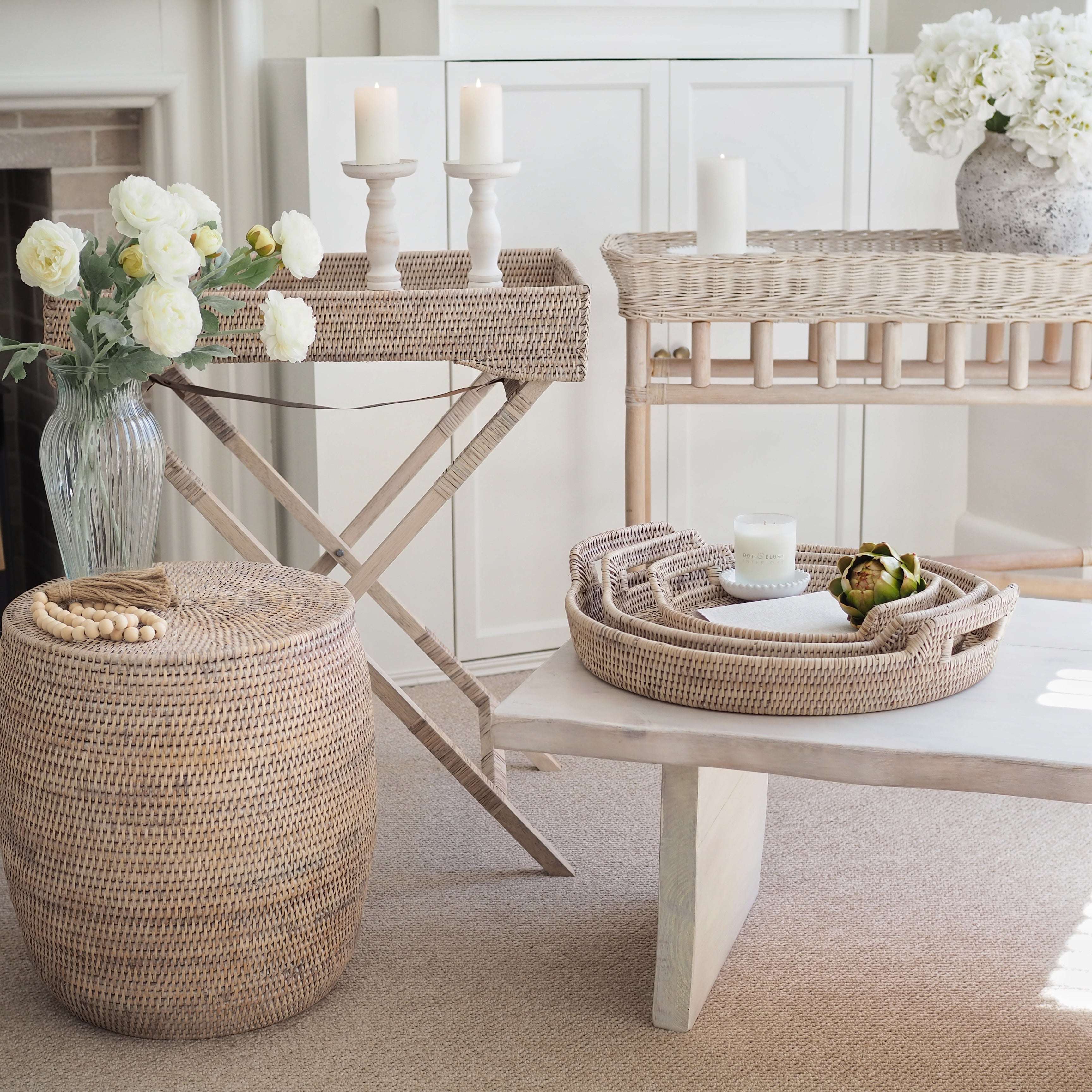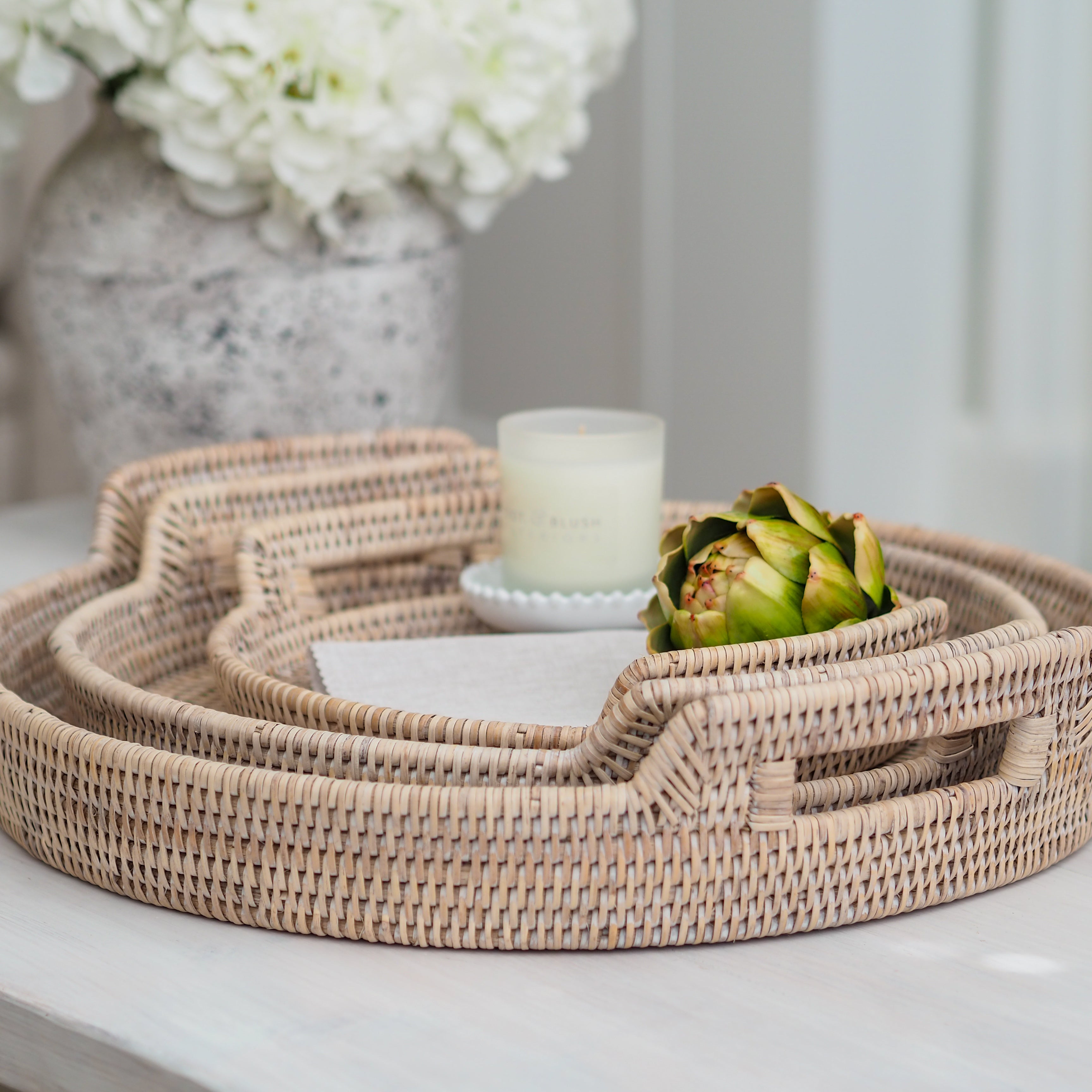 Inspirada en nuestras raíces de la costa sur, nuestra colección de ratán blanqueado ahora incluye bandejas de ratán blanqueado hechas a mano. Perfectas para exhibir tus accesorios favoritos, decorar tu mesa de centro o añadir un toque de elegancia a tu desayuno en la cama. Con un diseño atemporal, estas hermosas bandejas aportan un toque de estilo atemporal a cualquier espacio.