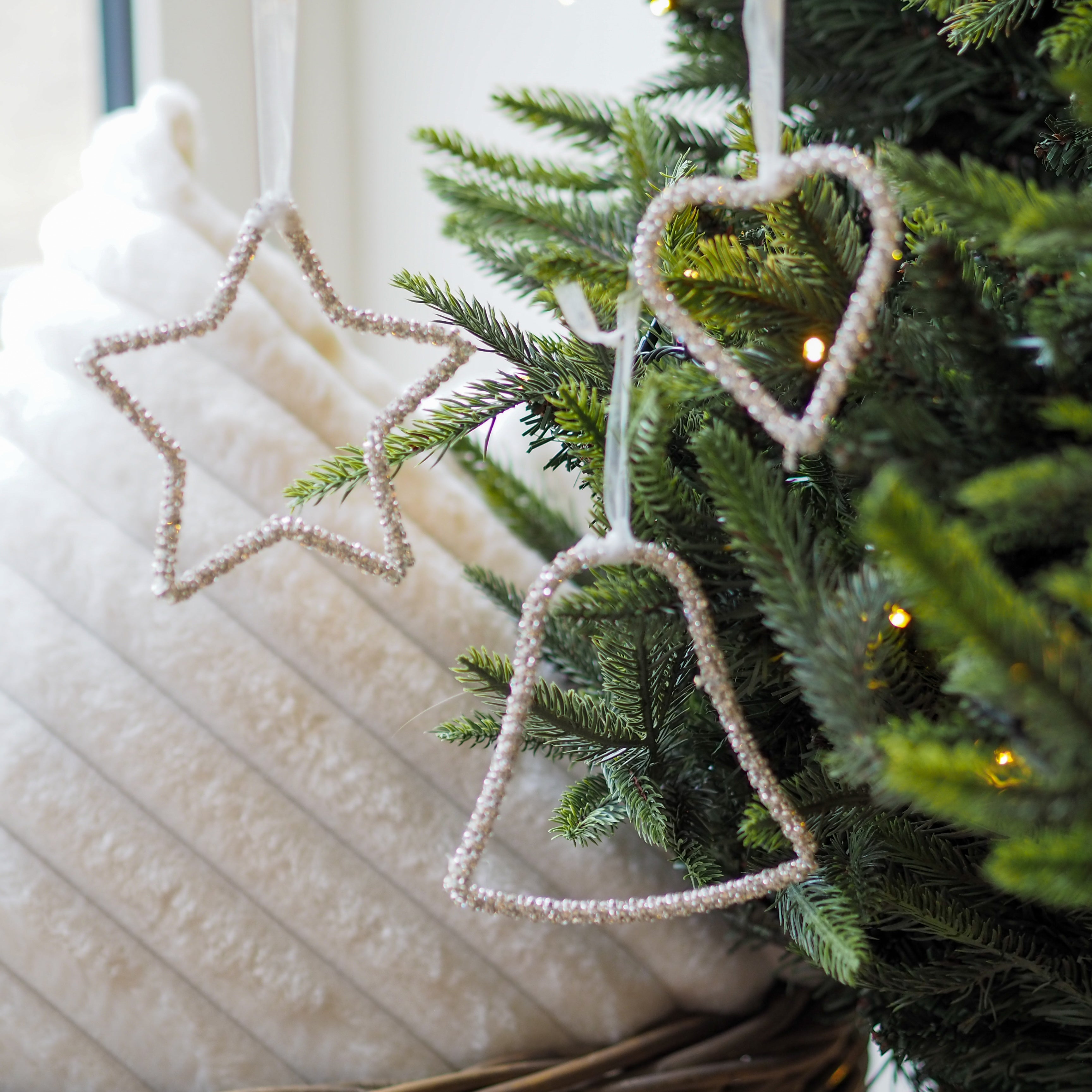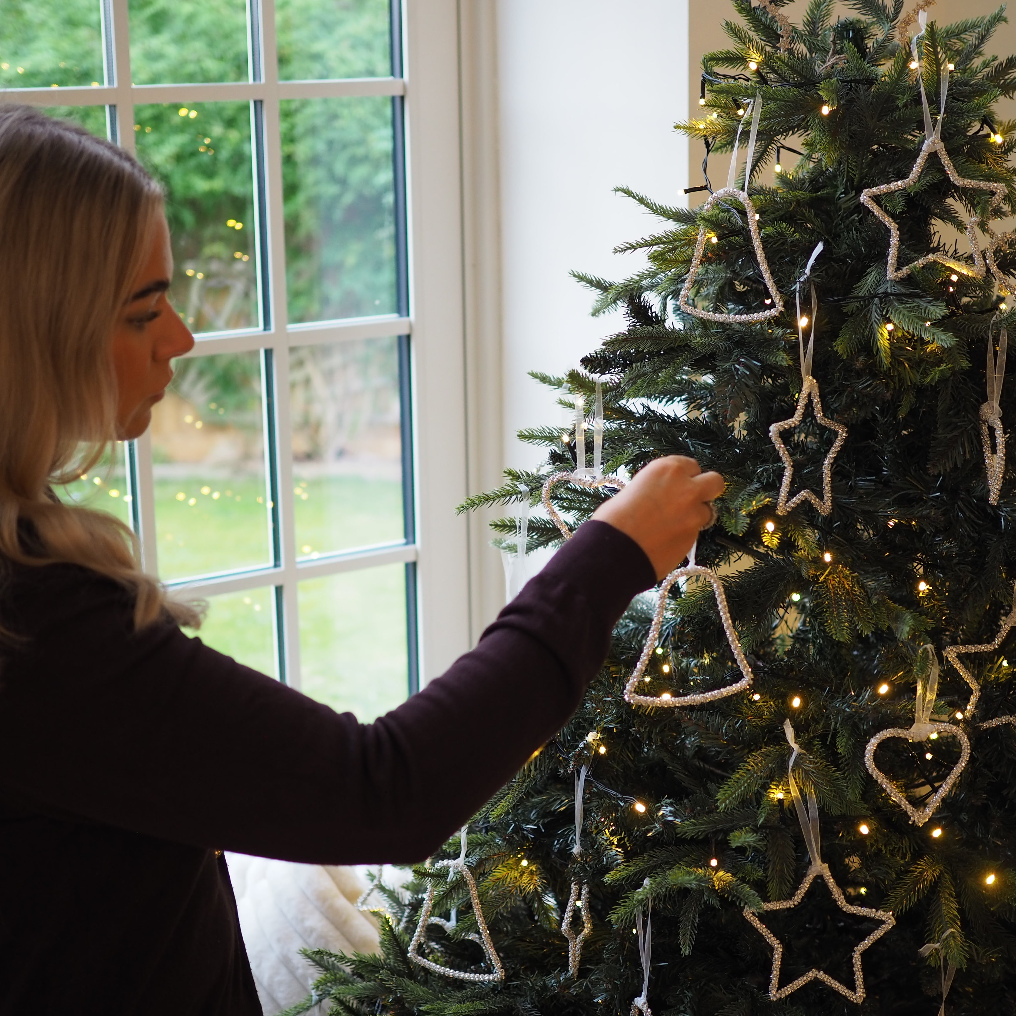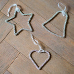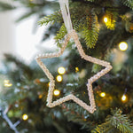 Add a touch of sparkle to your winter celebration with our beaded star hanging. Featuring shimmering silver beads that have been artfully threaded around a classic metal star shape. We love how these beautiful decorations reflect the light. Style in multiples on your tree, on handles & hooks around your home or dotted amongst garlands.