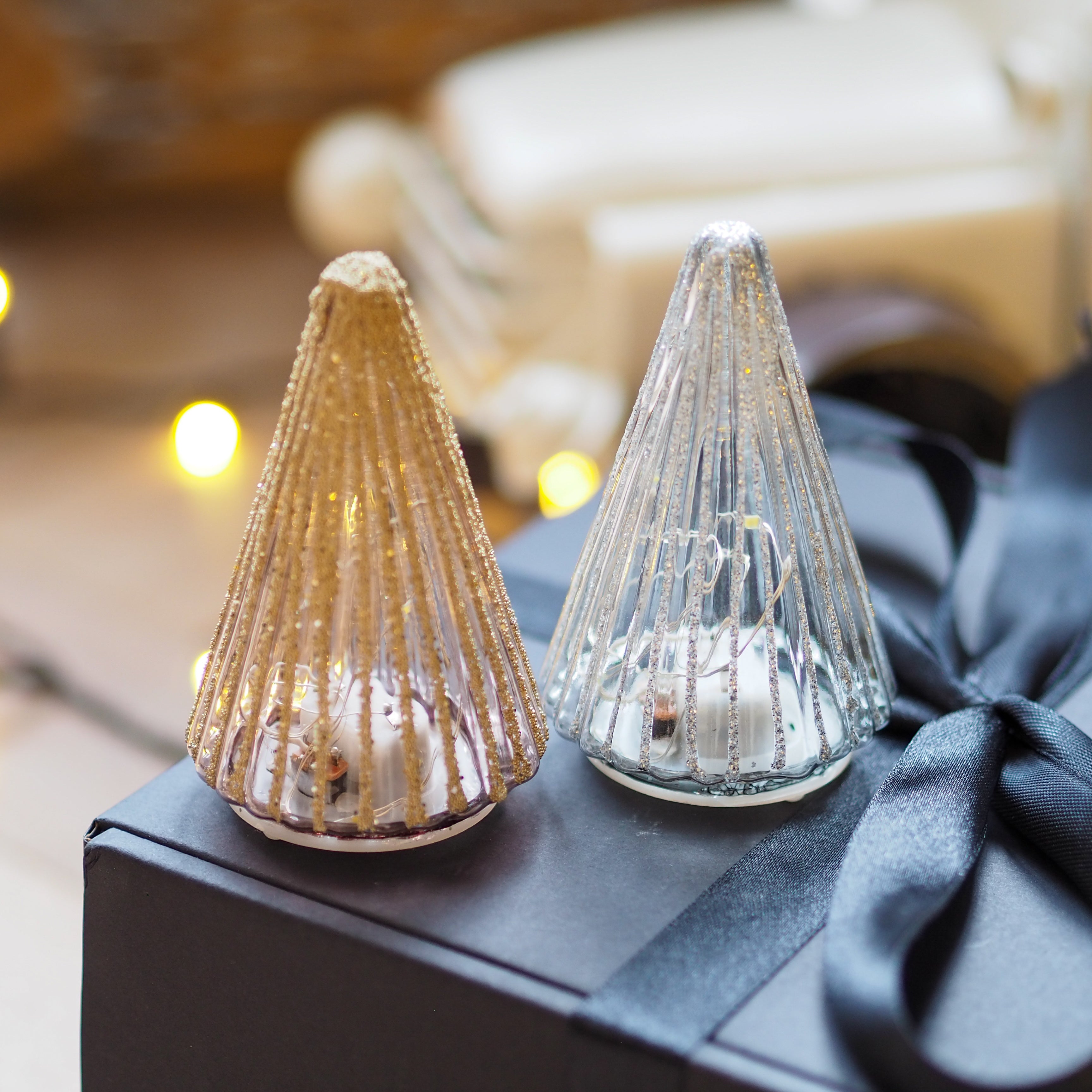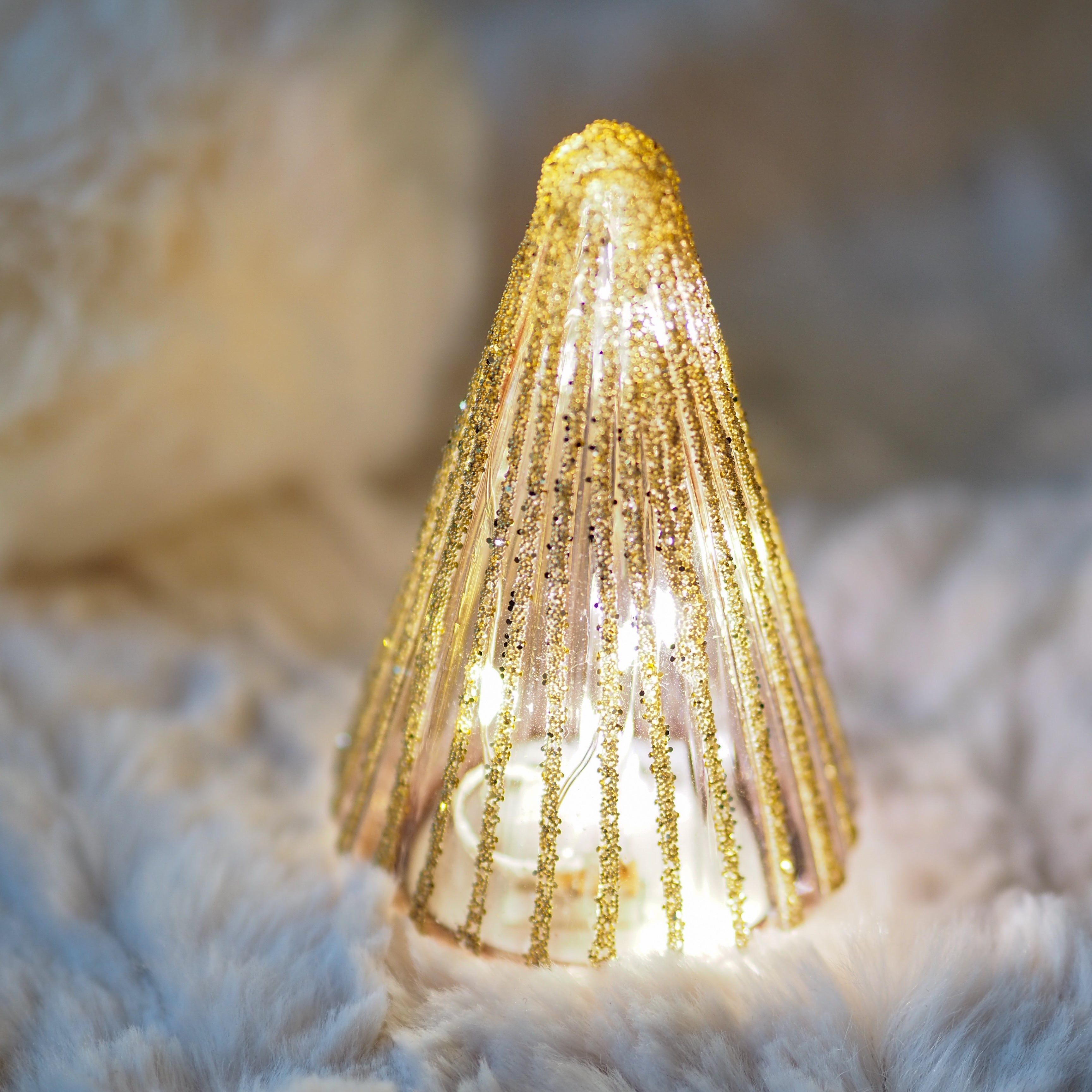 Bring a warm and ambient glow to your seasonal decor with our light up mini Christmas trees. These charming ornaments feature warm lights that twinkle to create a soft ambiance. The perfect addition to tabletops, mantles, or shelves, the glass structure is adorned with glitter detail.