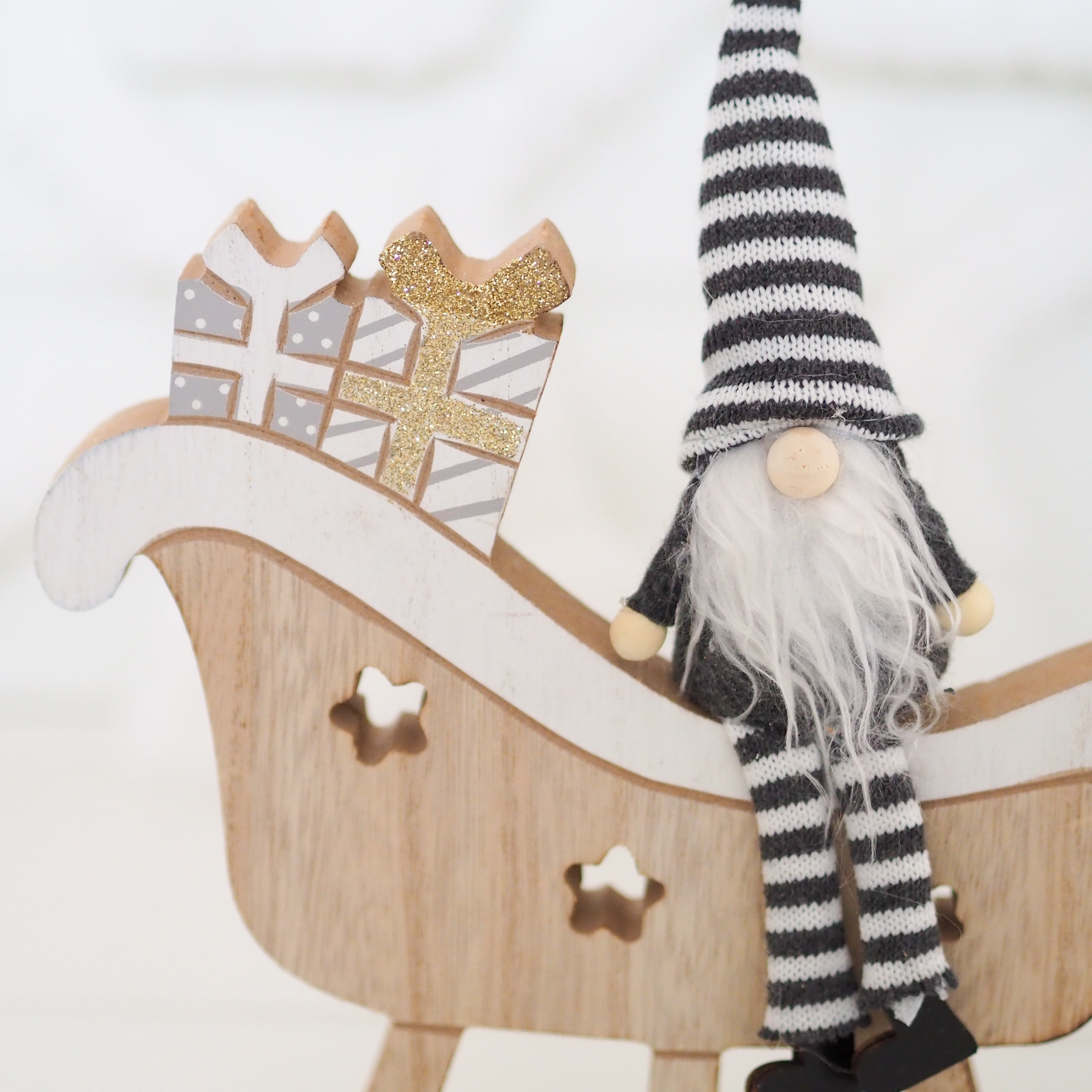 Ajoutez une touche adorable à votre décoration de Noël ou à vos décorations de Noël avec ce gonk décoratif sur luge, parfait pour apporter une touche de charme à votre intérieur. Ce luge en bois structuré abrite un adorable gonk coiffé d'un chapeau rayé neutre. Parfait pour décorer votre étagère ou votre décoration de Noël cet hiver.