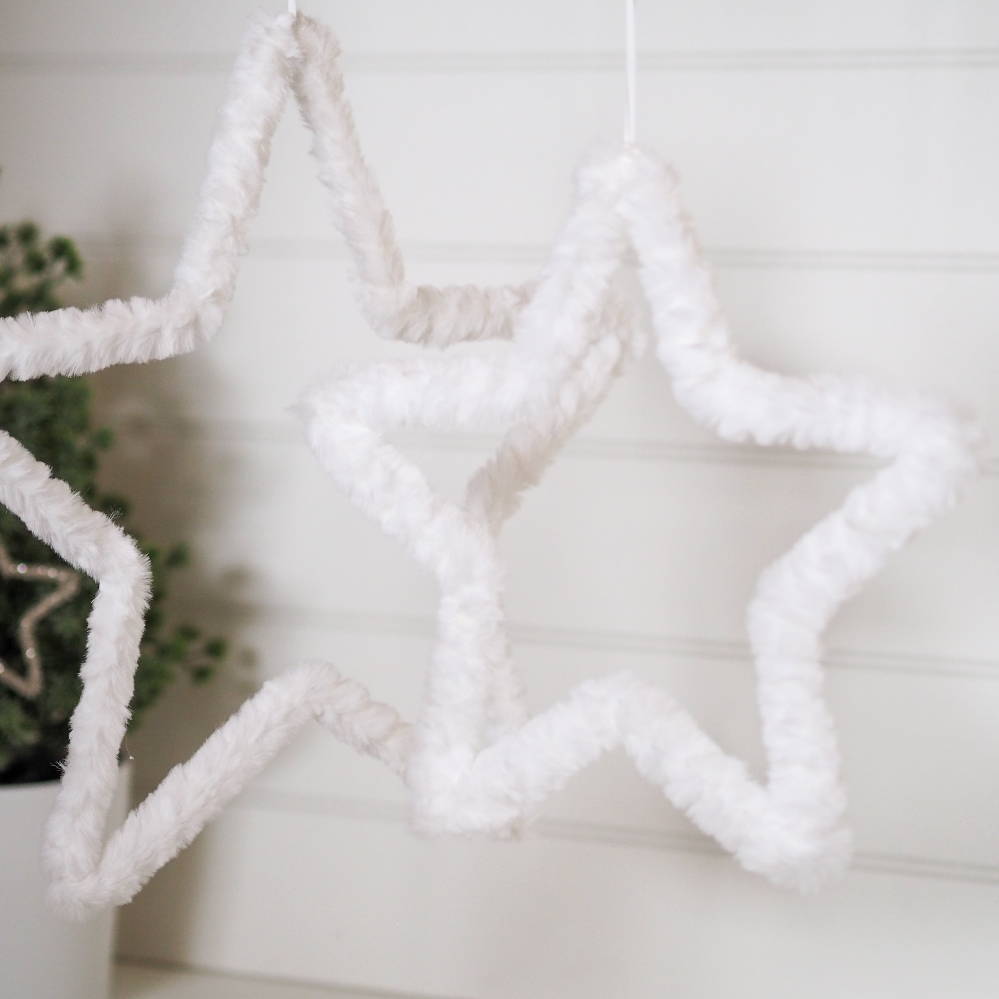 Superbe ajout à votre décoration saisonnière, cette étoile en fourrure blanche est l'accessoire idéal à suspendre pour créer une touche de magie hivernale. Ornées d'un effet neige effet fourrure, elles apportent une touche chaleureuse à cette pièce neutre et intemporelle dont vous pourrez profiter année après année.