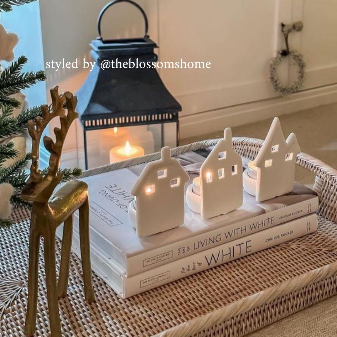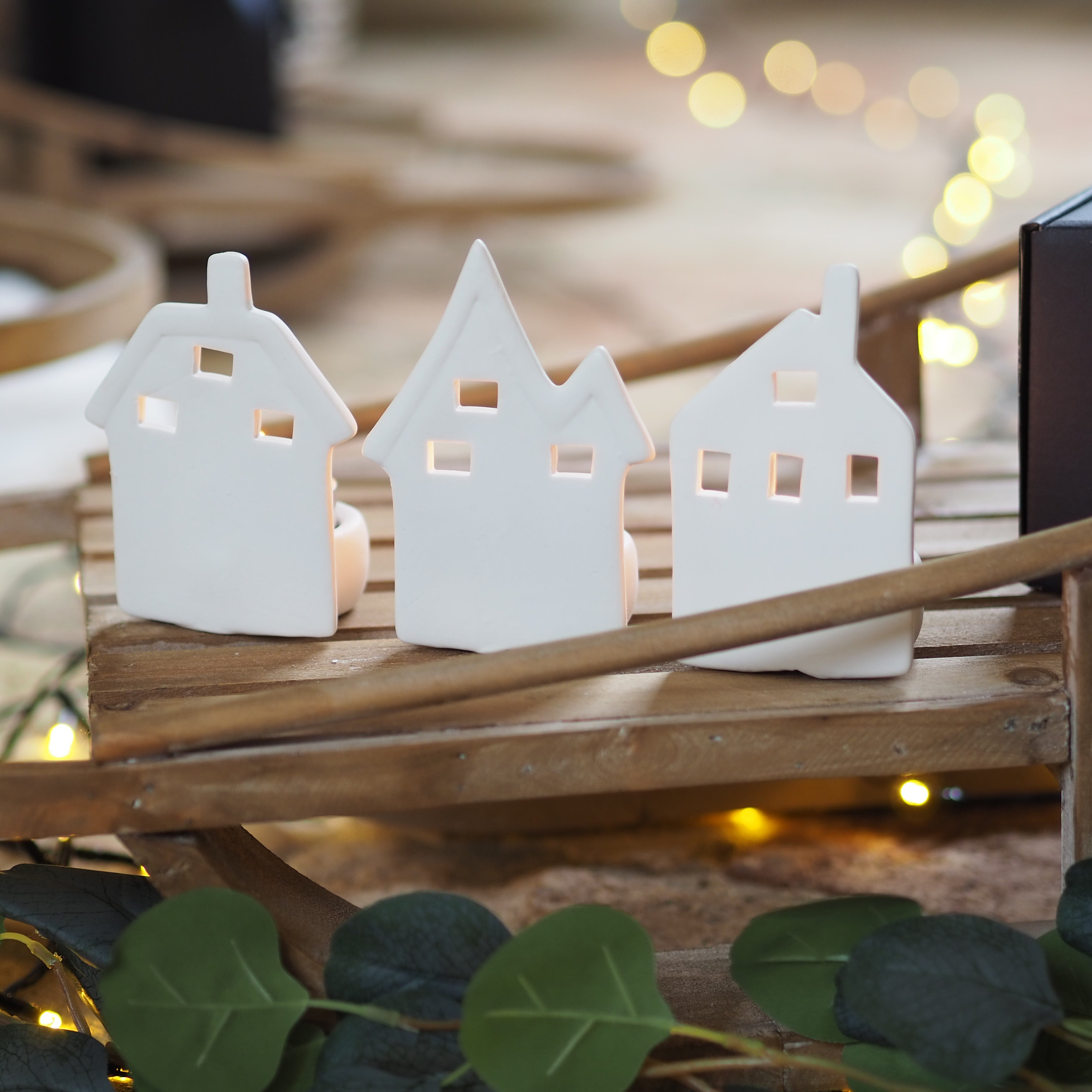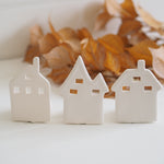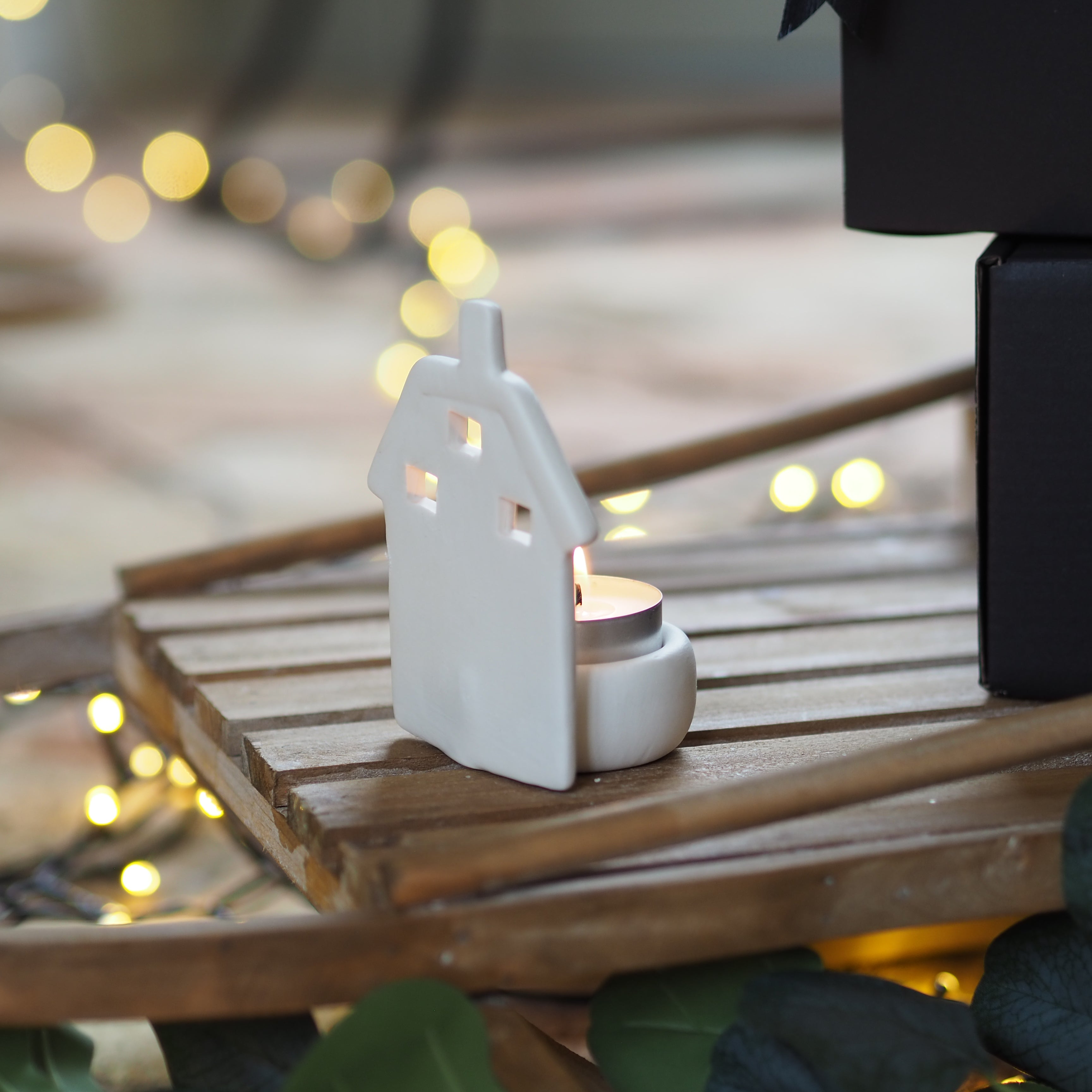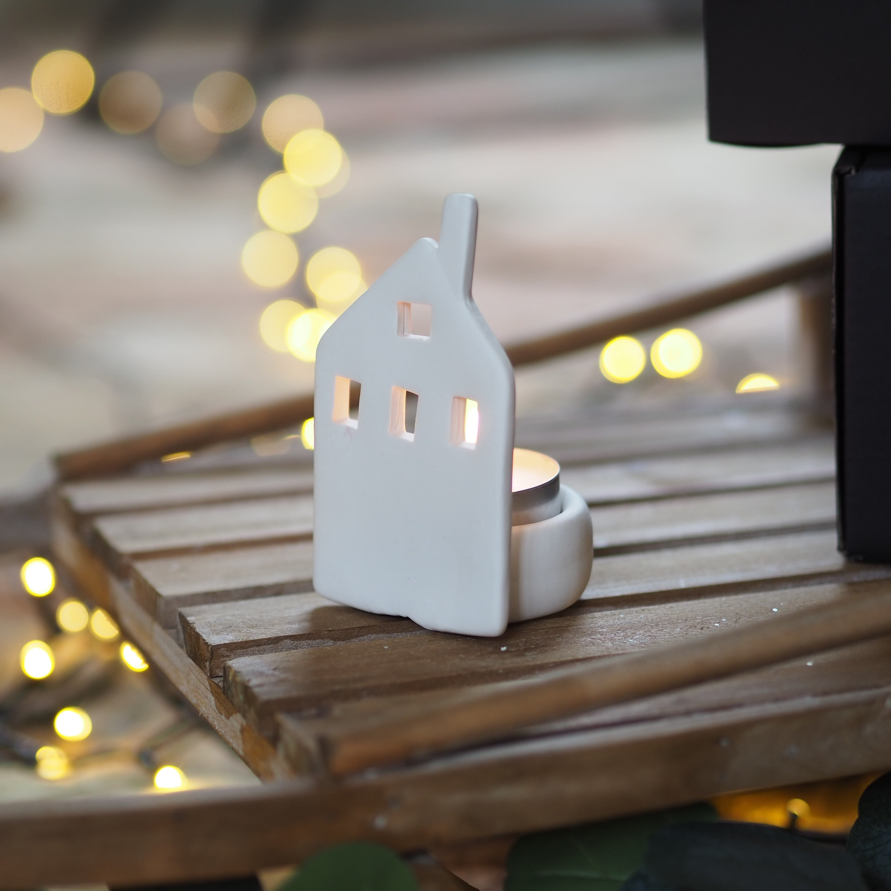 Ajoutez une ambiance chaleureuse à votre intérieur avec ces photophores en céramique blanche en forme de maison. Dotés d'un support à l'arrière, ils diffusent une lumière d'ambiance sur les charmantes fenêtres lorsqu'ils sont allumés. Parfaits pour décorer votre intérieur en plusieurs exemplaires en automne et en hiver, ils créeront une ambiance chaleureuse.