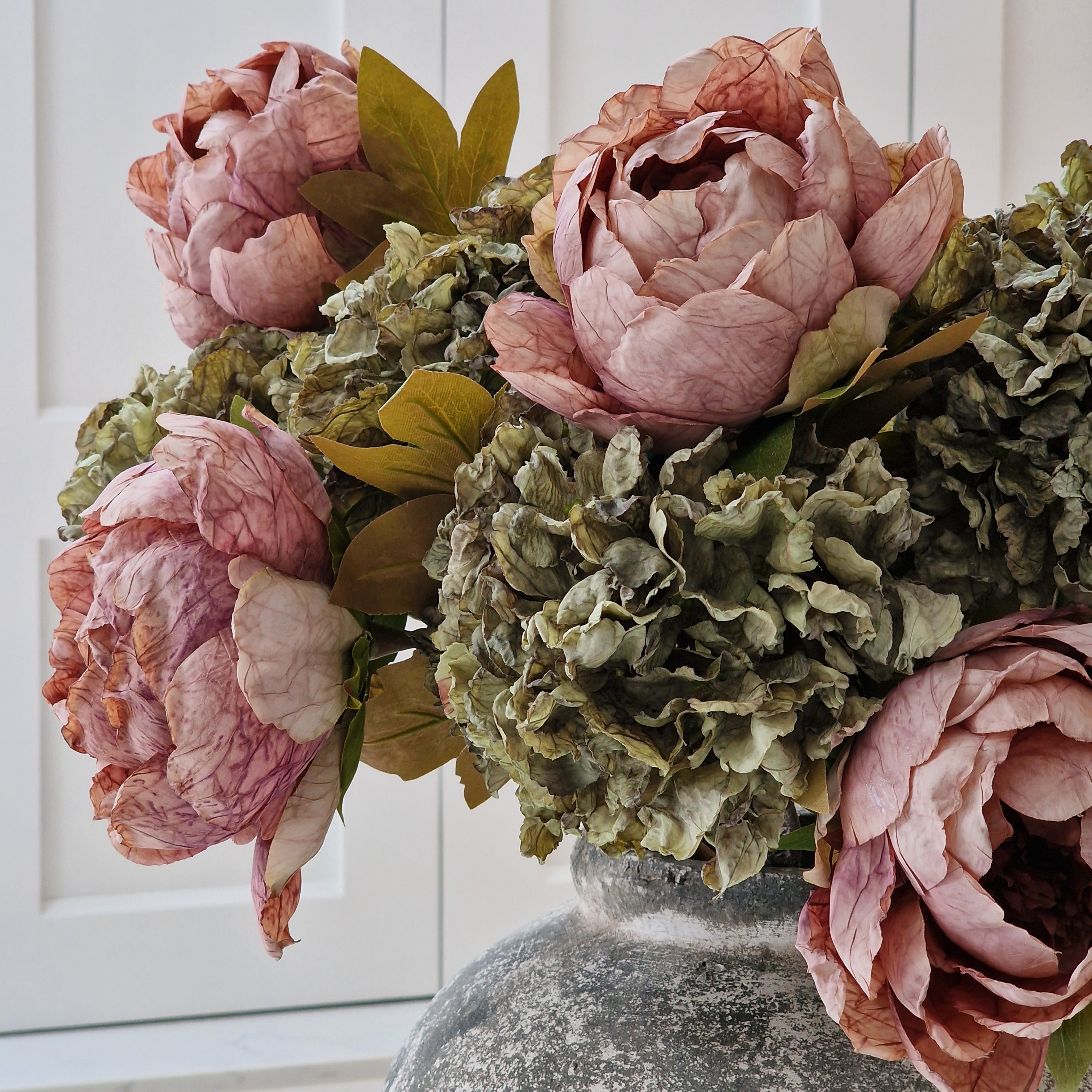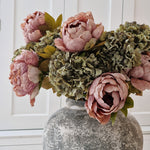 Bouquet fermé de pivoines et d'hortensias artificiels
