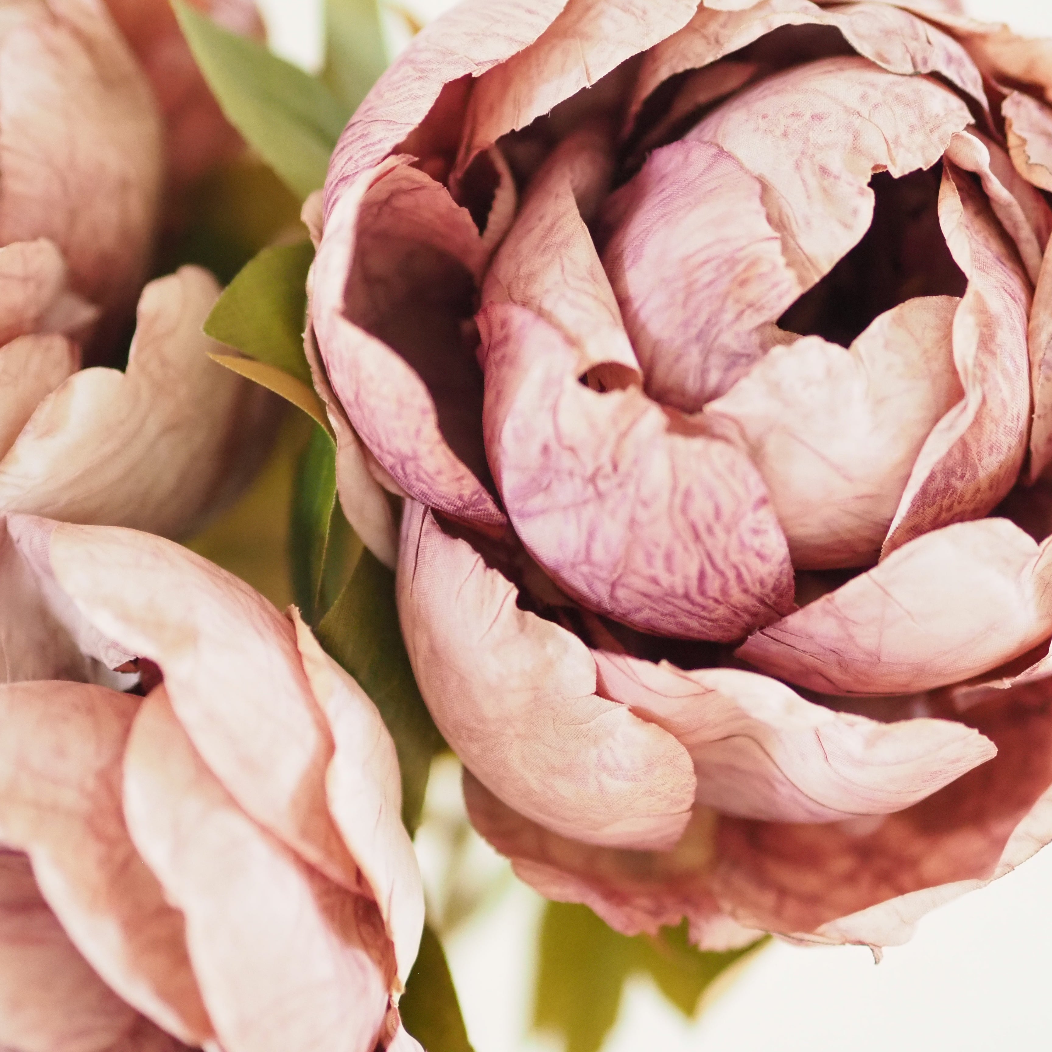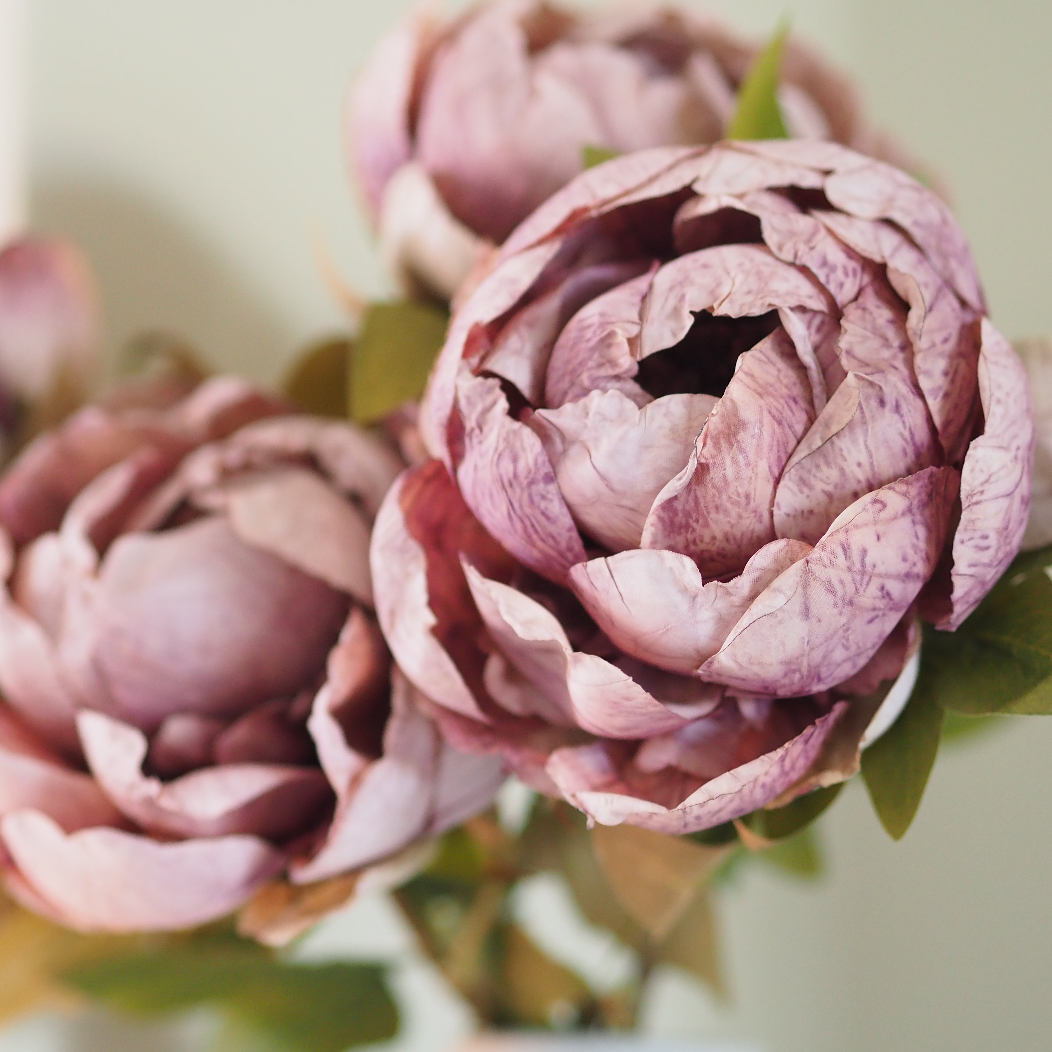 5 tiges de pivoines fermées roses artificielles, aspect séché