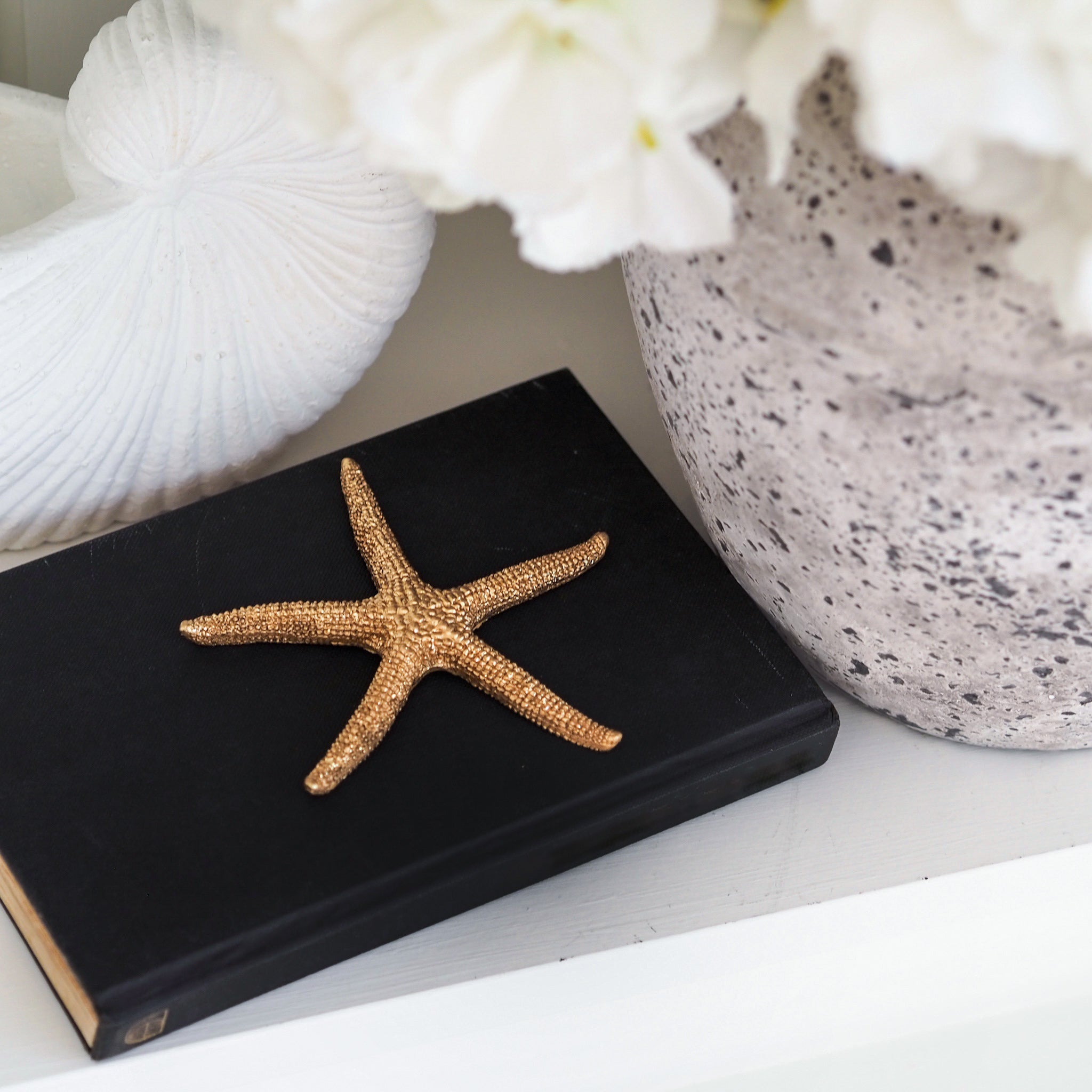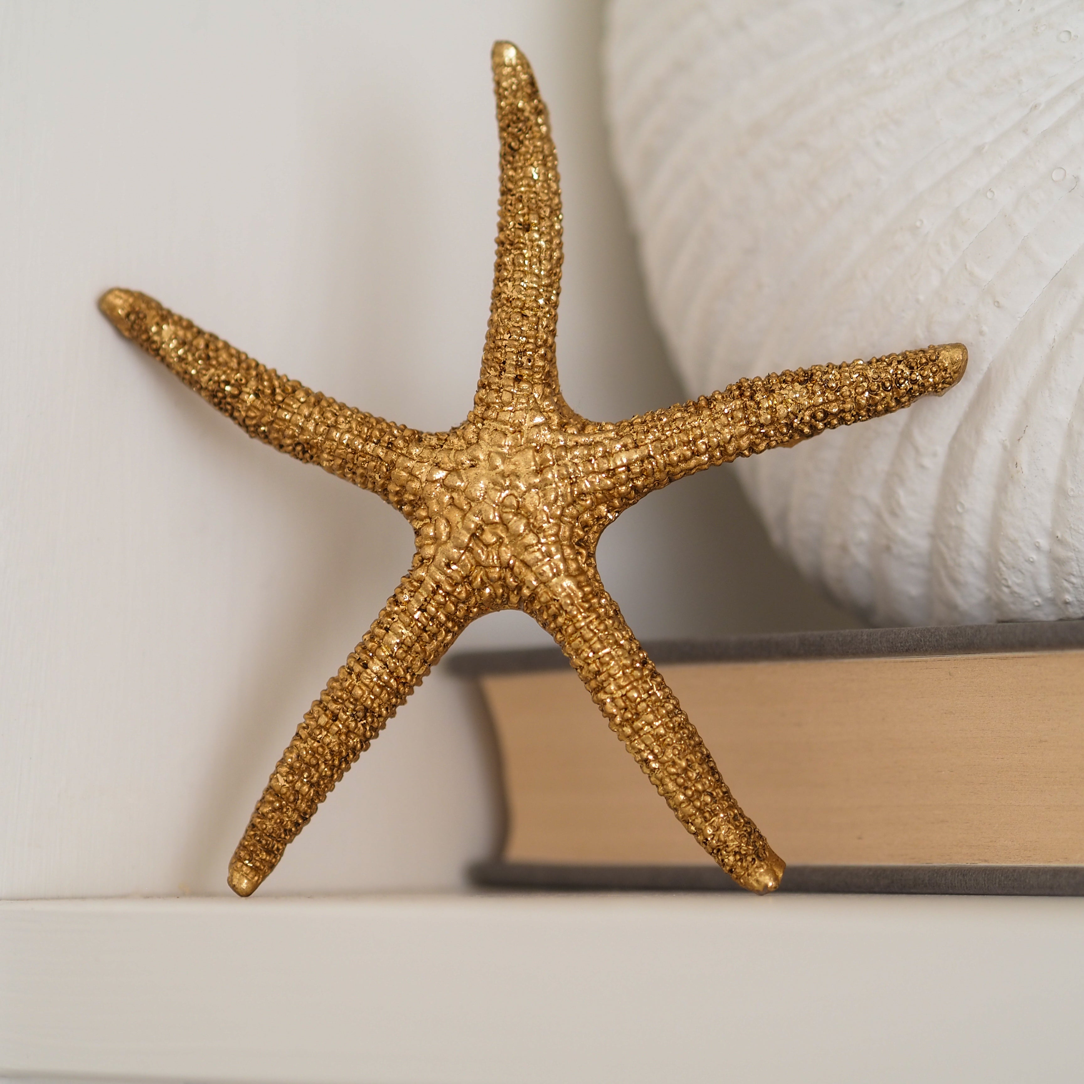 Inspiré par nos racines côtières, ajoutez une touche de beauté nautique à votre intérieur avec cette superbe étoile de mer décorative en résine dorée. Elle sera du plus bel effet sur une étagère, une table basse ou un meuble d'appoint pour embellir votre espace.