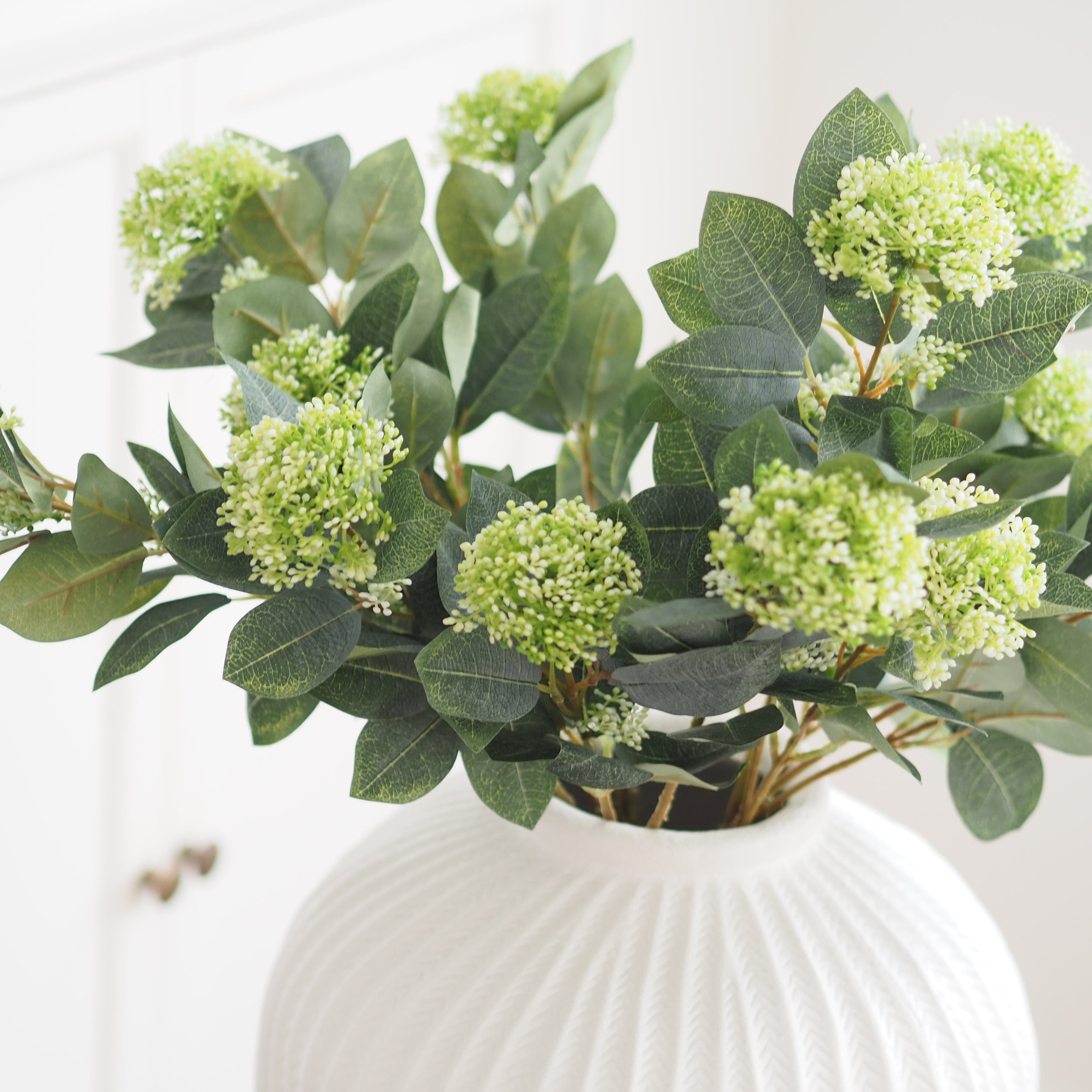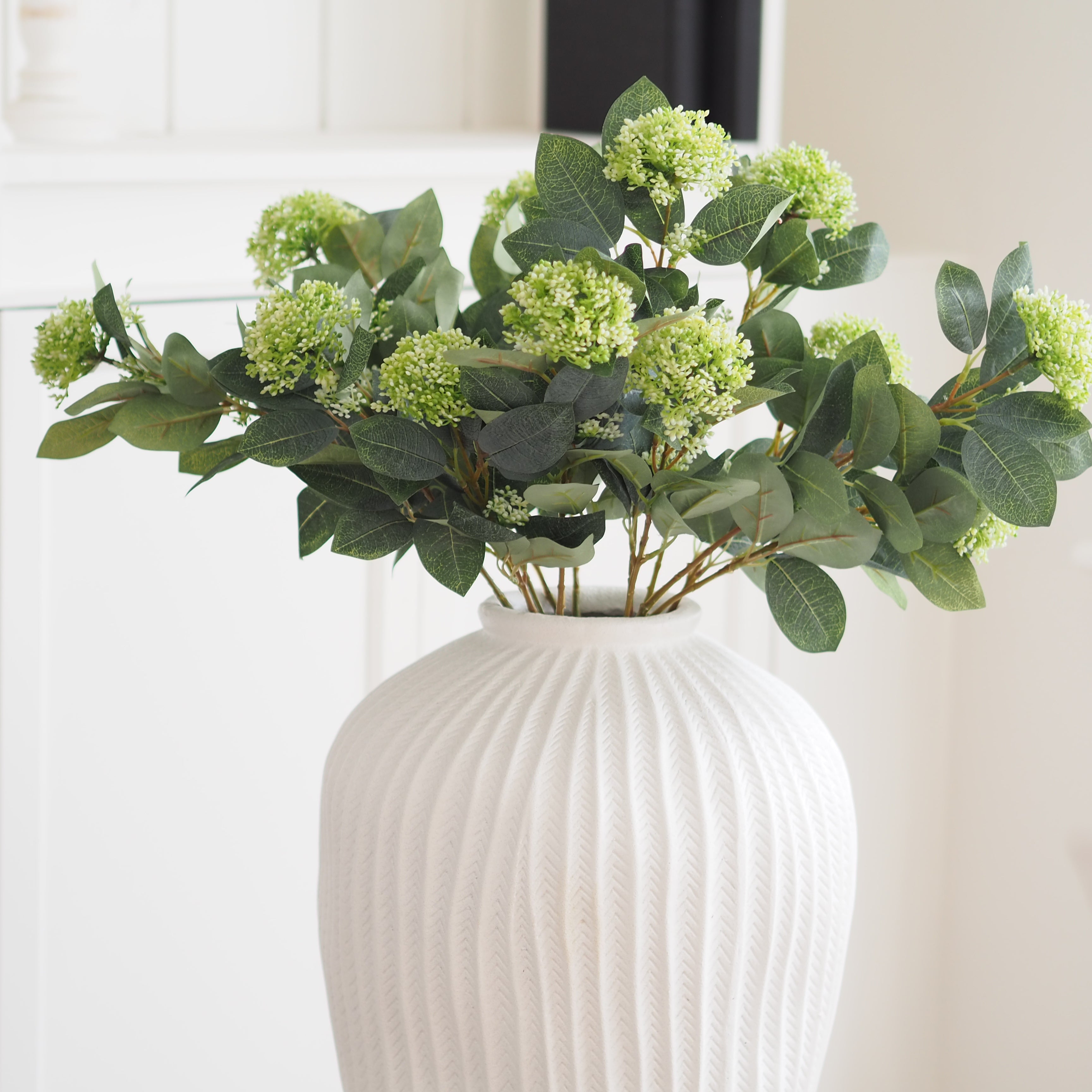 The perfect neutral filler for your display. These beautiful Viburnum stems are filled with leafy green leaves and delicate white floral heads. Style on their own for a neutral display or with your favourite stems as a stunning backdrop filler.