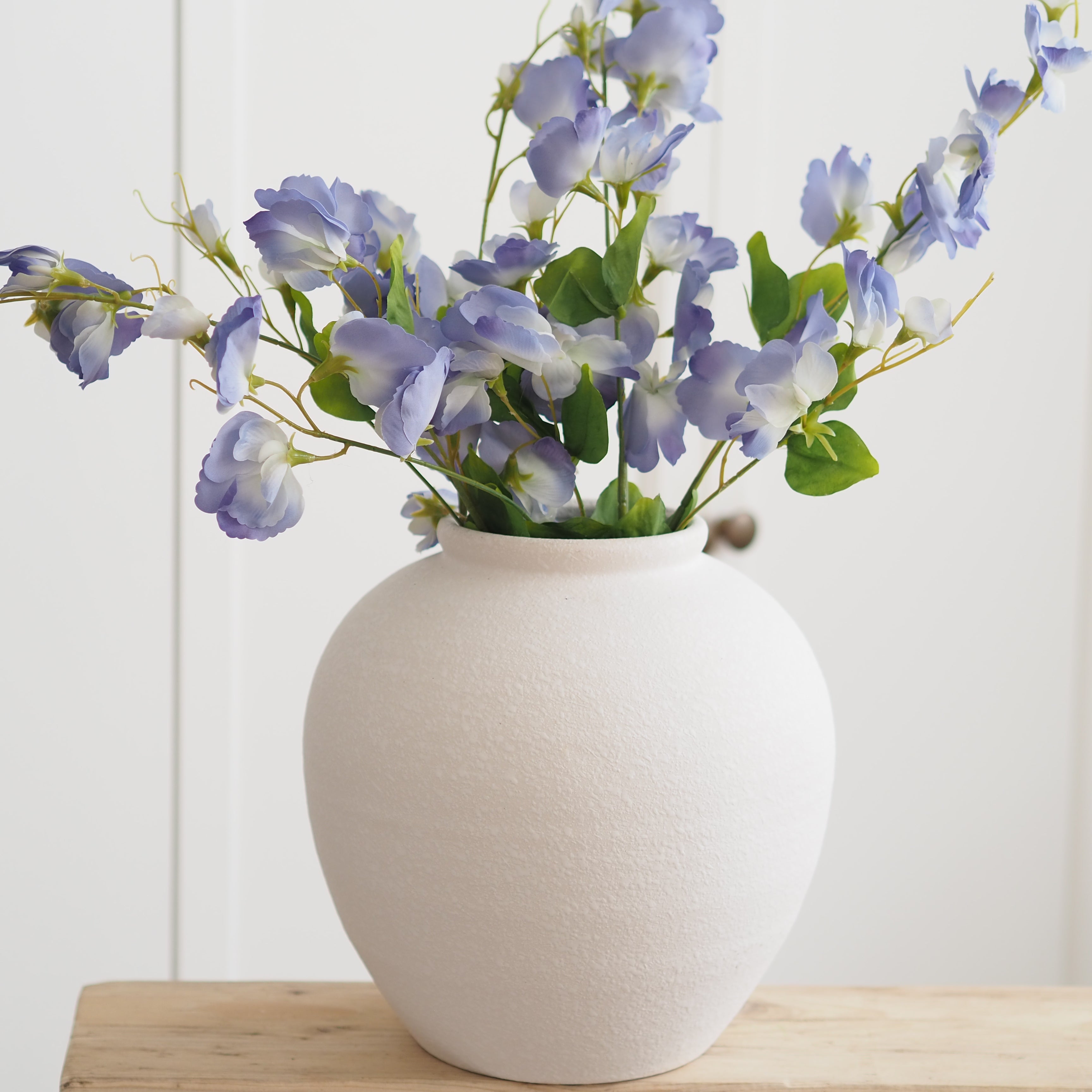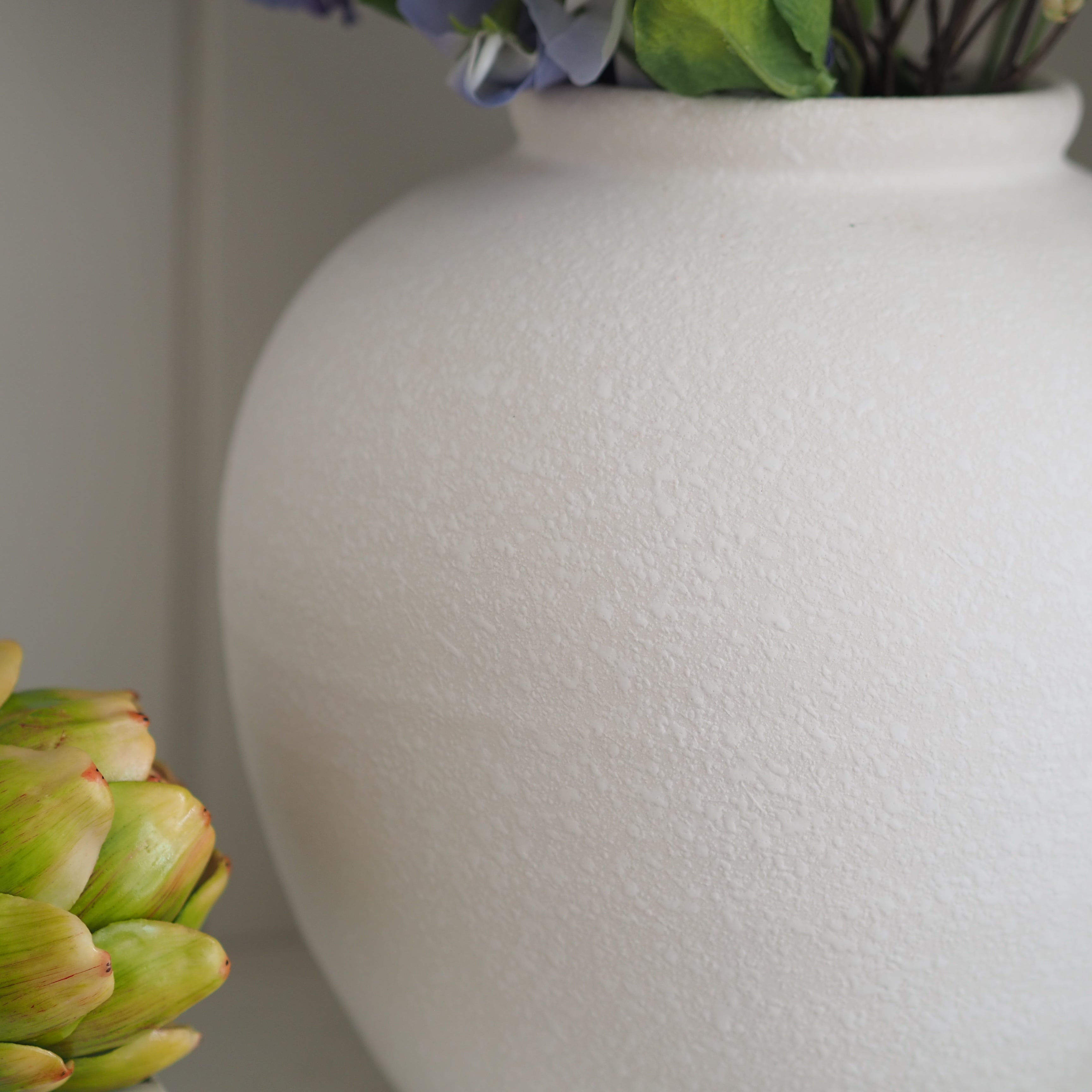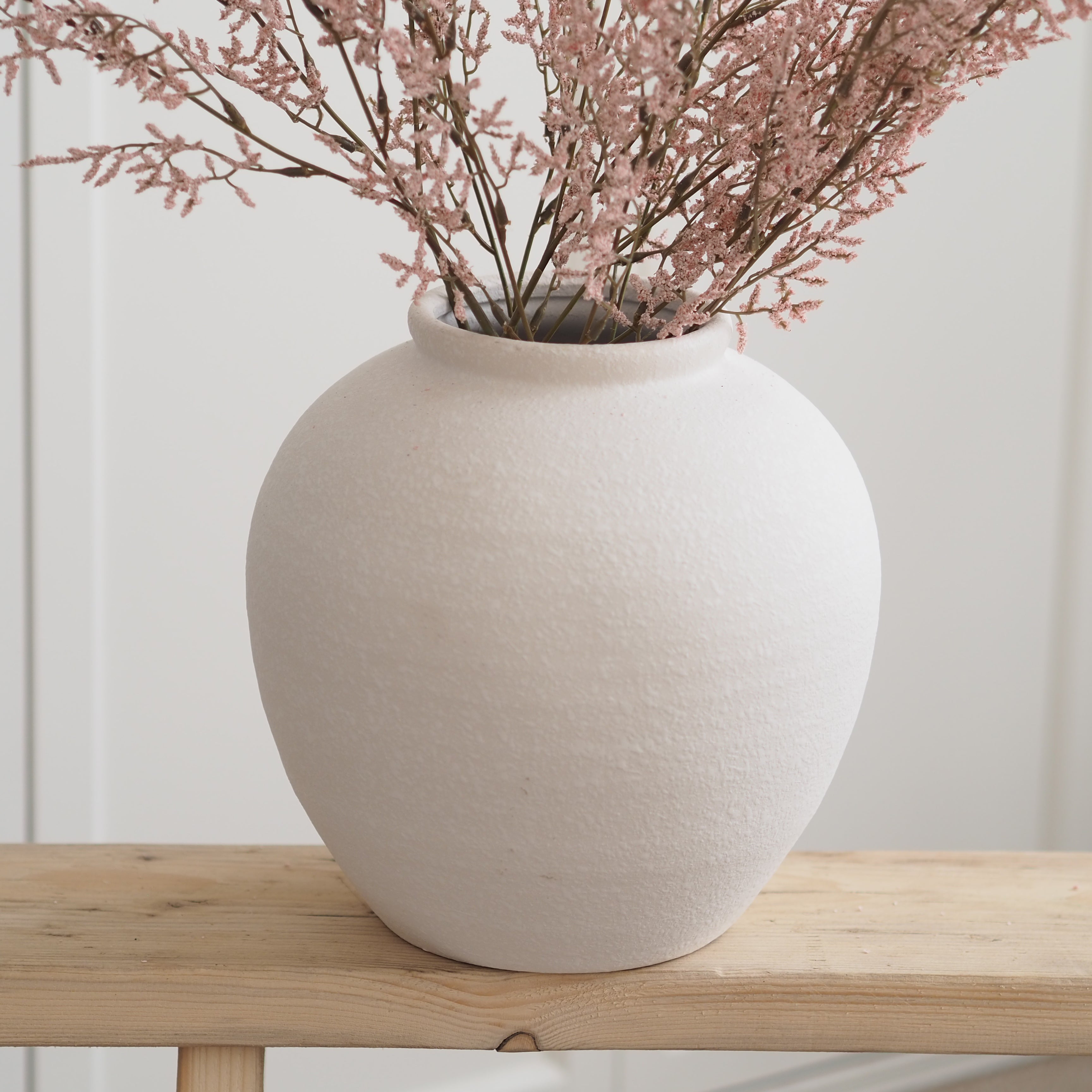 La pièce maîtresse parfaite. Ce vase blanc mat texturé est une pièce merveilleusement naturelle et neutre, au design accrocheur, à la fois intemporel et moderne. Avec sa texture naturelle époustouflante, ce magnifique vase apportera texture et profondeur à n'importe quel espace. Son ouverture à bord ondulé apporte une touche unique et est parfaite pour accueillir vos bouquets et tiges Dot & Blush préférés.