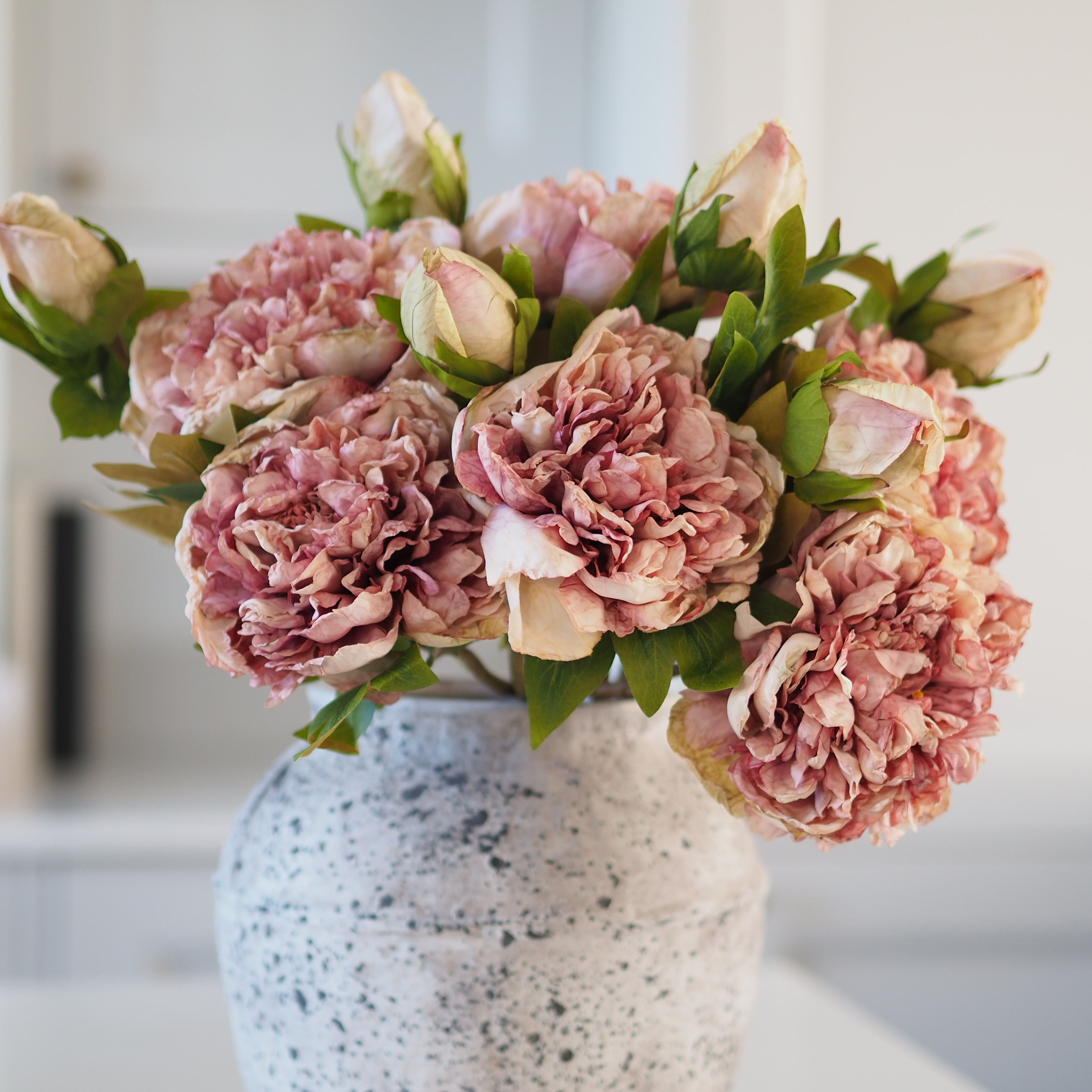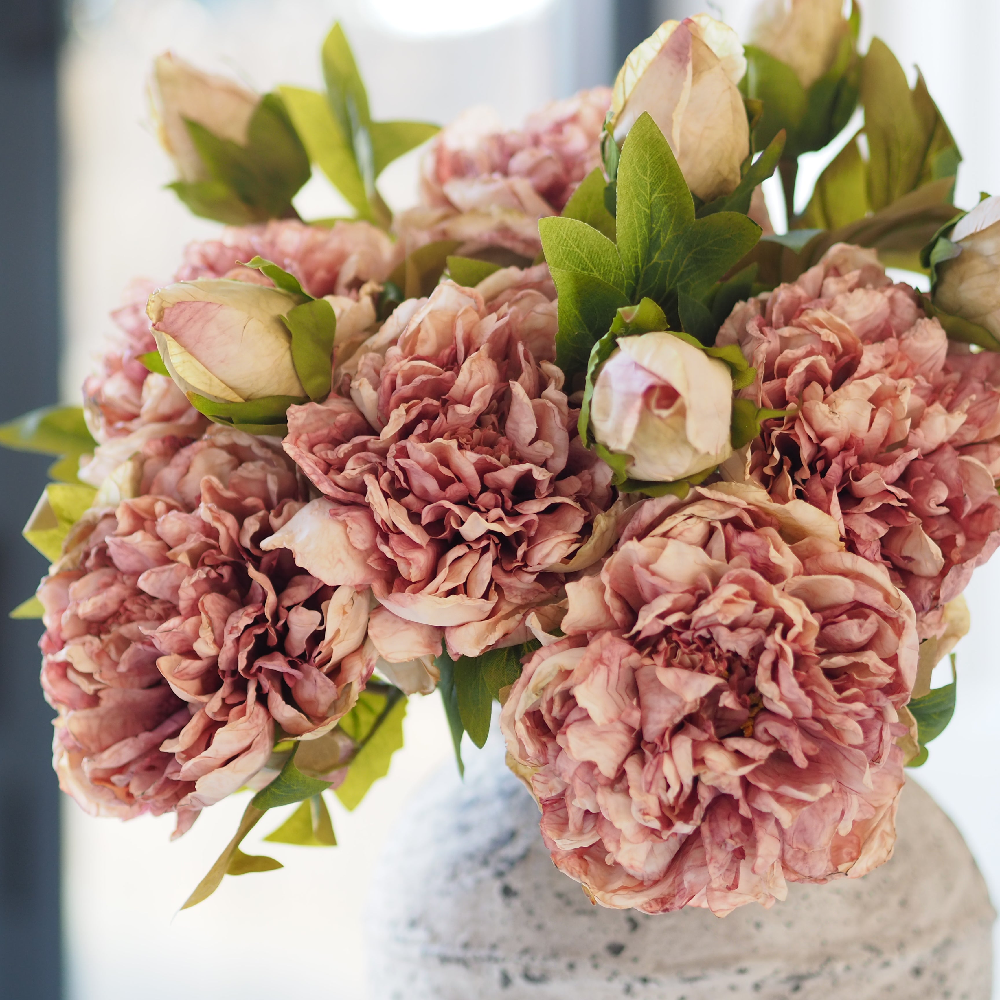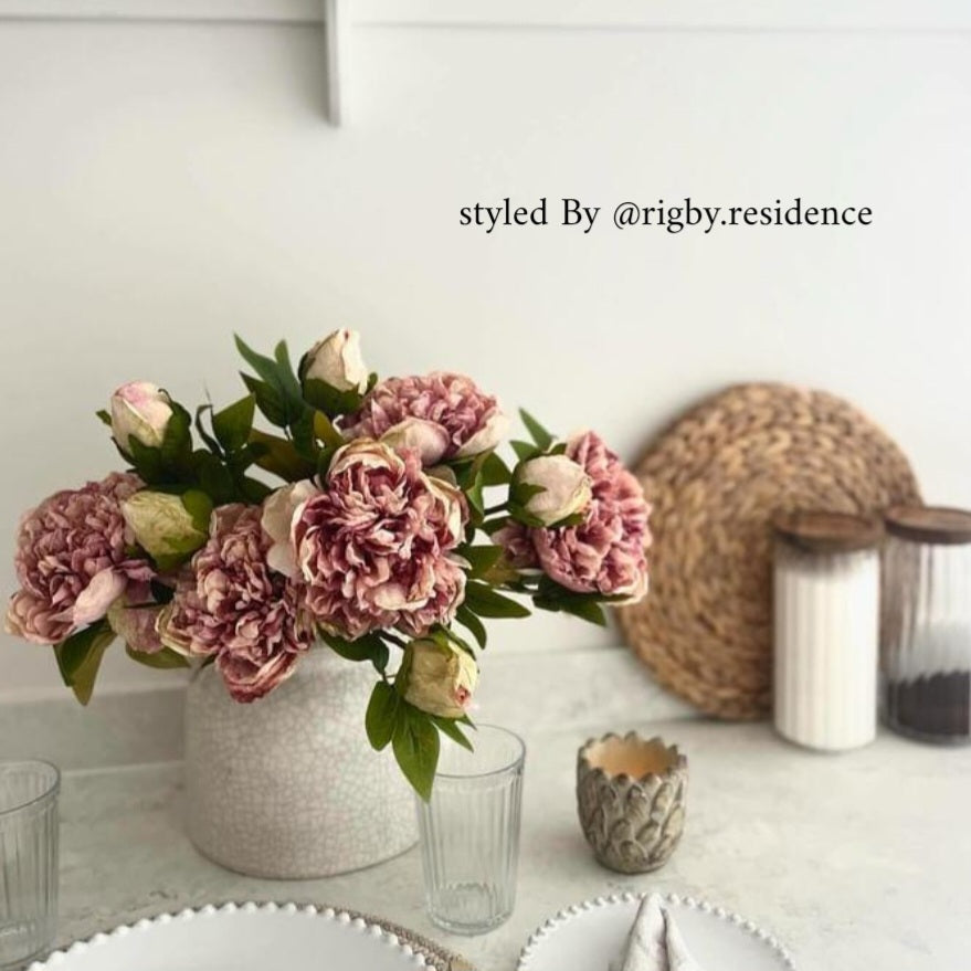 Superbe ajout à notre collection de fausses tiges, ces tiges de pivoines séchées à ouverture tactile sont parfaites pour créer une composition florale spectaculaire chez vous. Les têtes sont ornées de magnifiques pétales détaillés et de feuilles ultra-réalistes, conçues pour donner l'impression d'avoir été séchées à l'air libre. Disposez-les en plusieurs exemplaires dans votre vase préféré pour une présentation époustouflante.