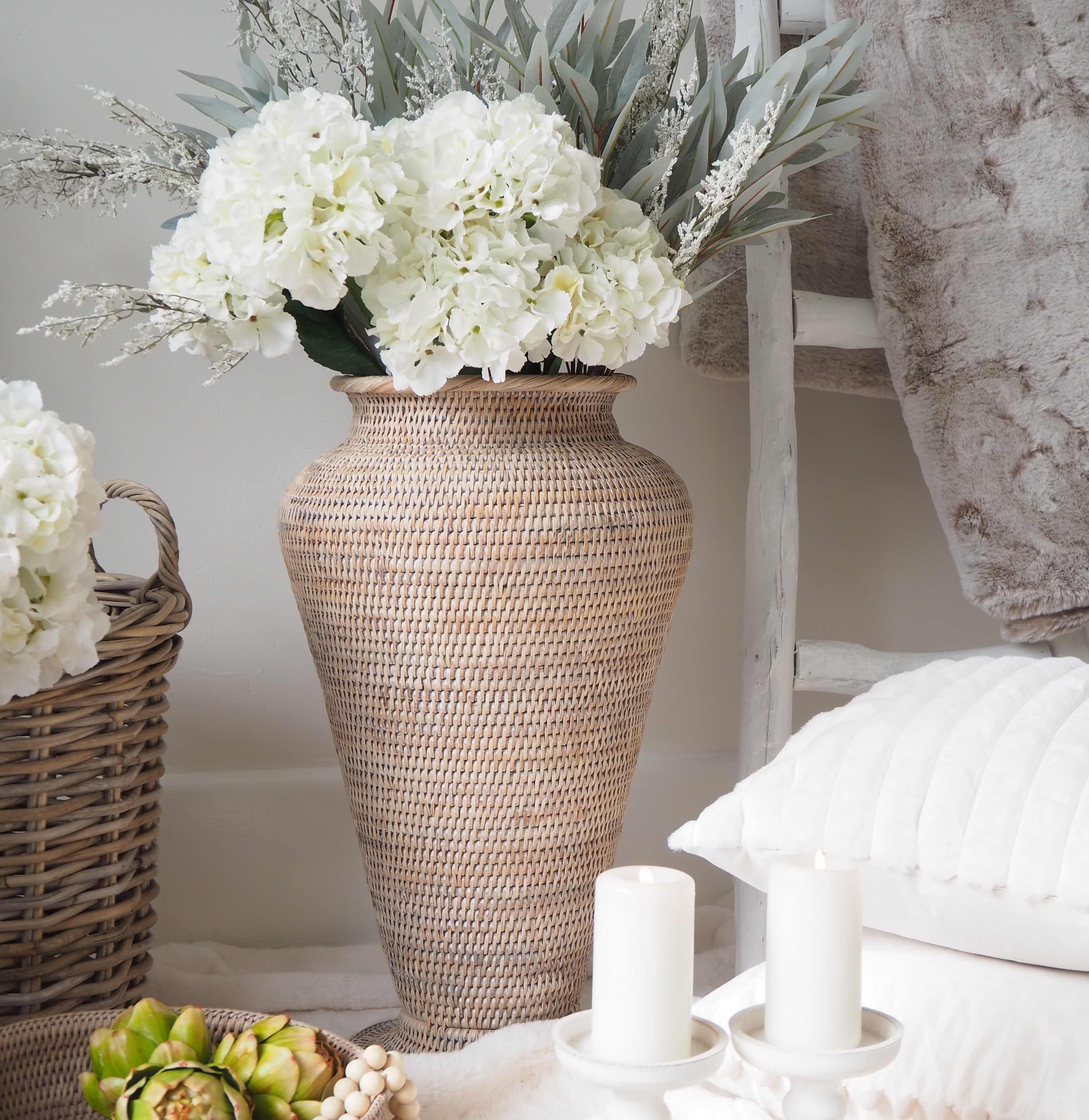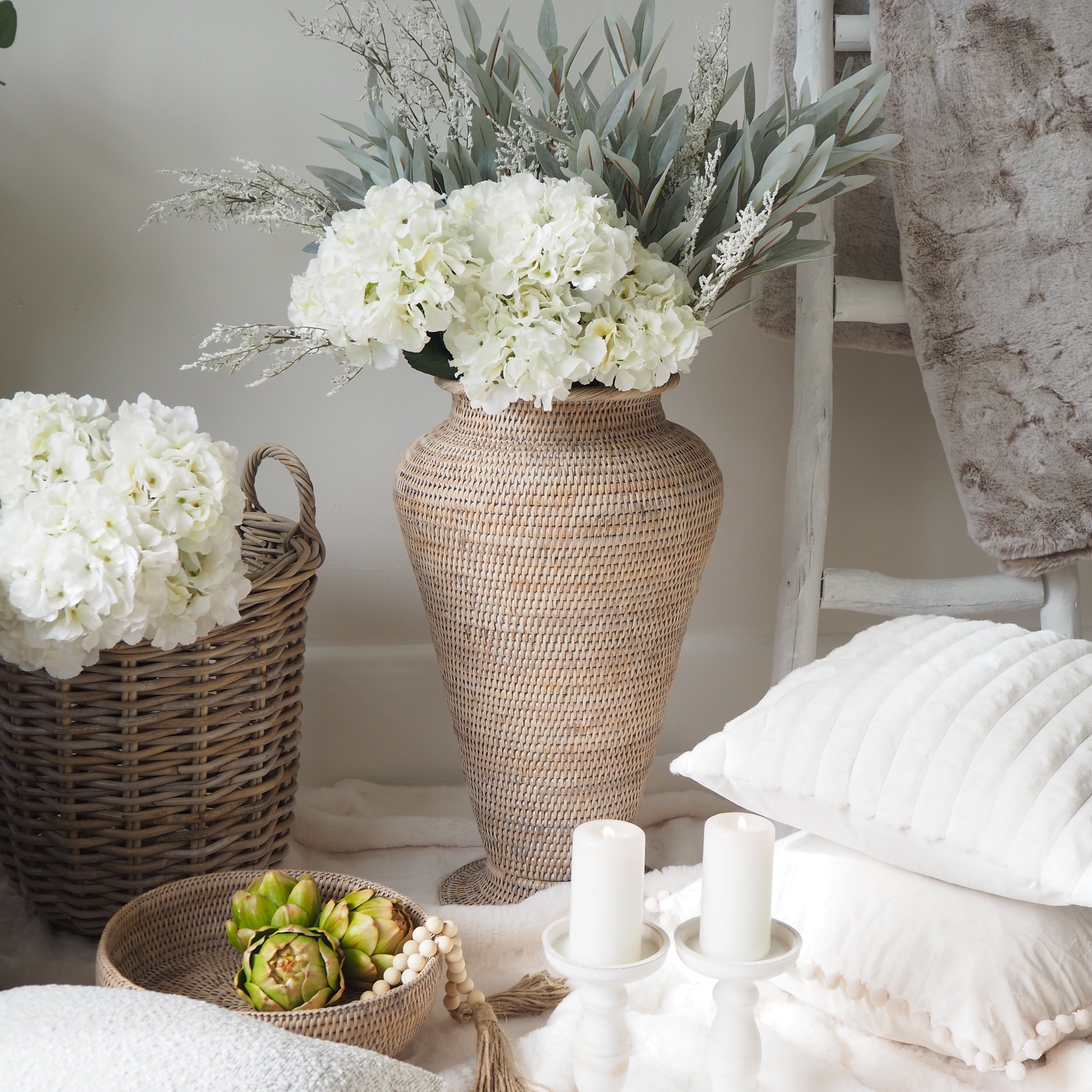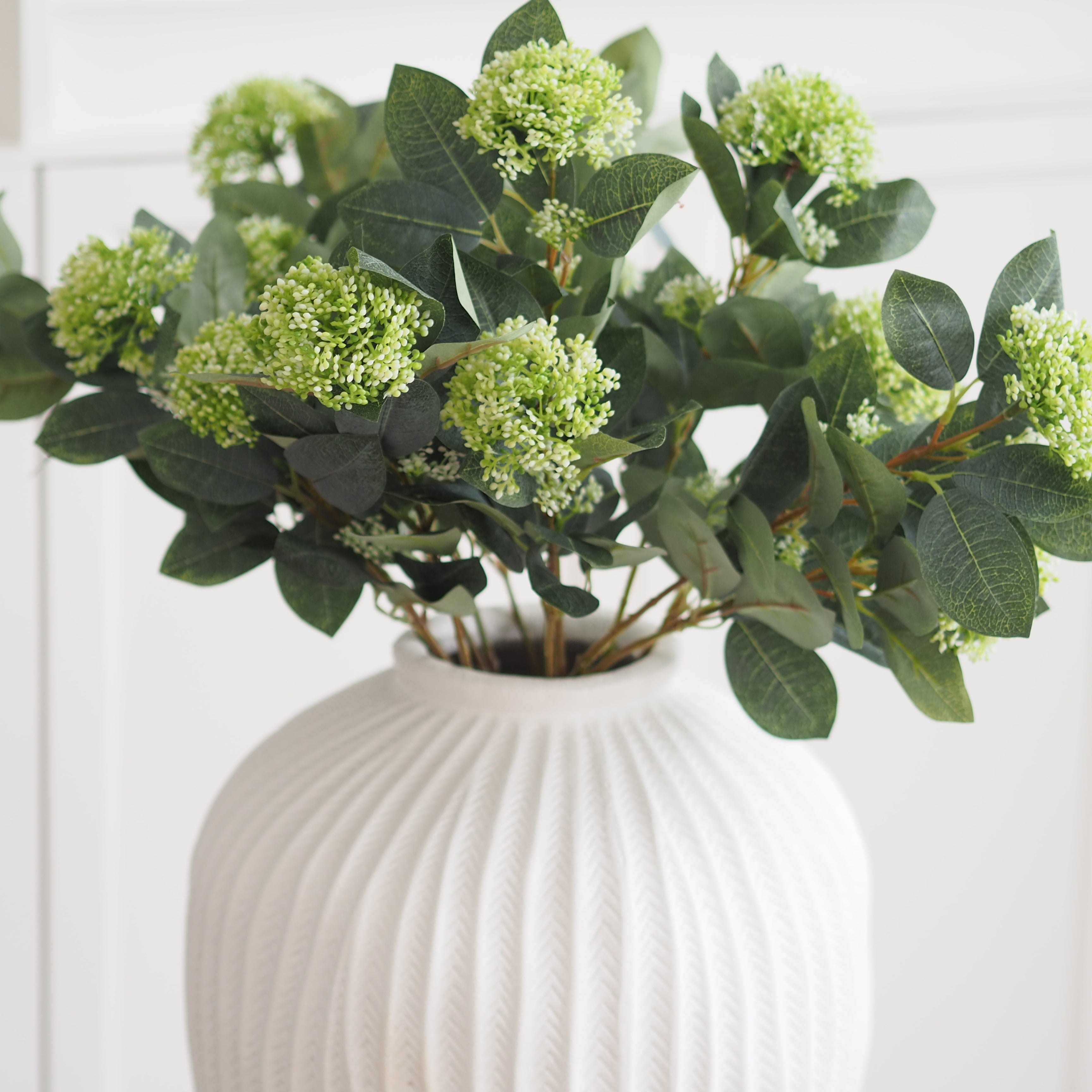 Bouquet classique de fausses fleurs d'hortensia blanc et d'eucalyptus