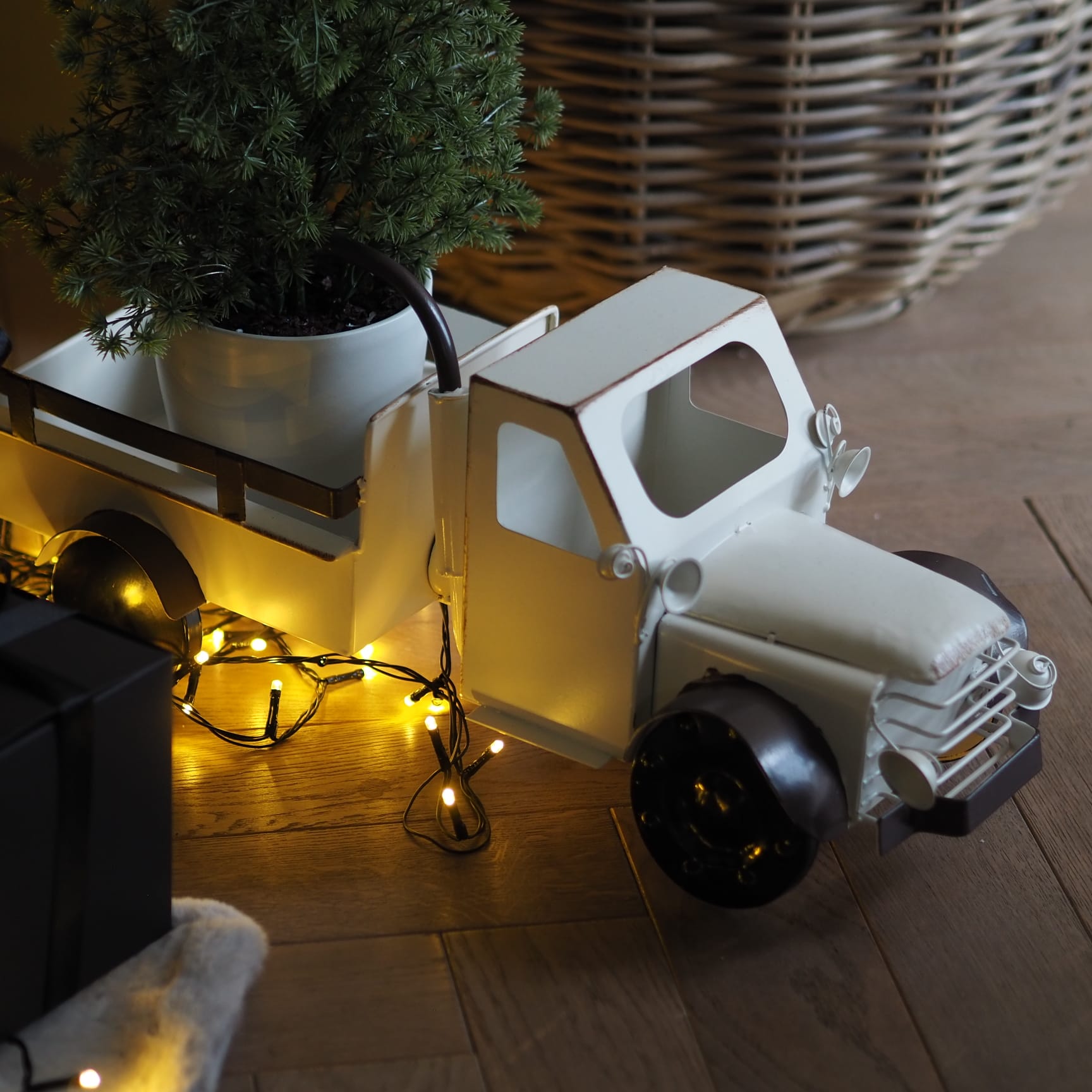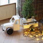 A magical statement piece that you can enjoy year on year. Our vintage metal truck ornament is beautifully crafted to bring a touch of nostalgic cheer to your seasonal decor. With its perfect, soft white finish, distressed detail and rustic charm, this beautiful car pairs effortlessly with a classic and elegant Winter setting. Display by the tree, on a mantel, or as a unique centrepiece in your seasonal display.