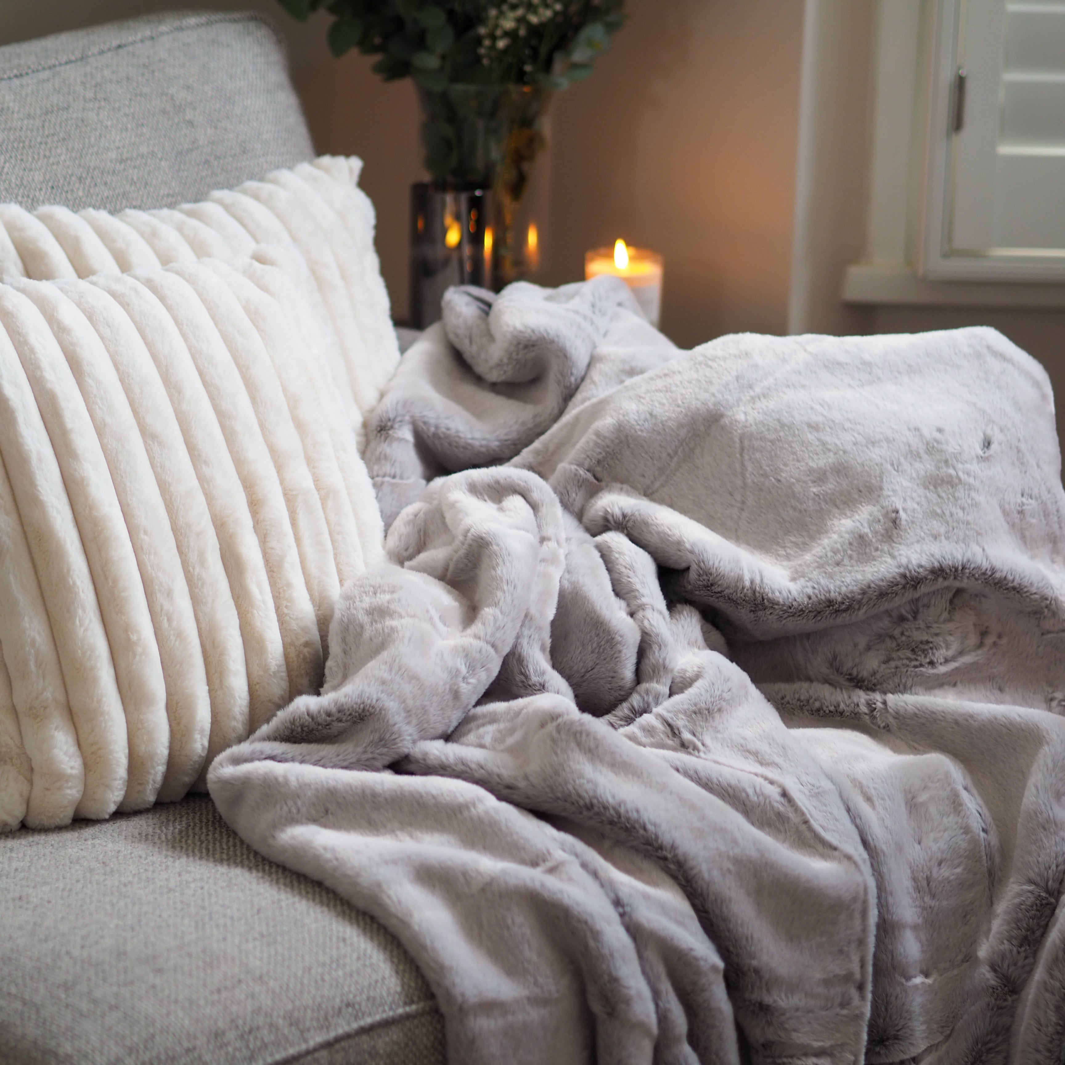 Add a luxurious and cosy touch to your sofa or bed with this gorgeous faux rabbit fur throw. The extra thick, irresistibly soft texture feels sumptuous and decadent and the grey colour is the perfect neutral for any space in your home. Perfect for cosy evenings or gifting a loved one. Dry clean only.