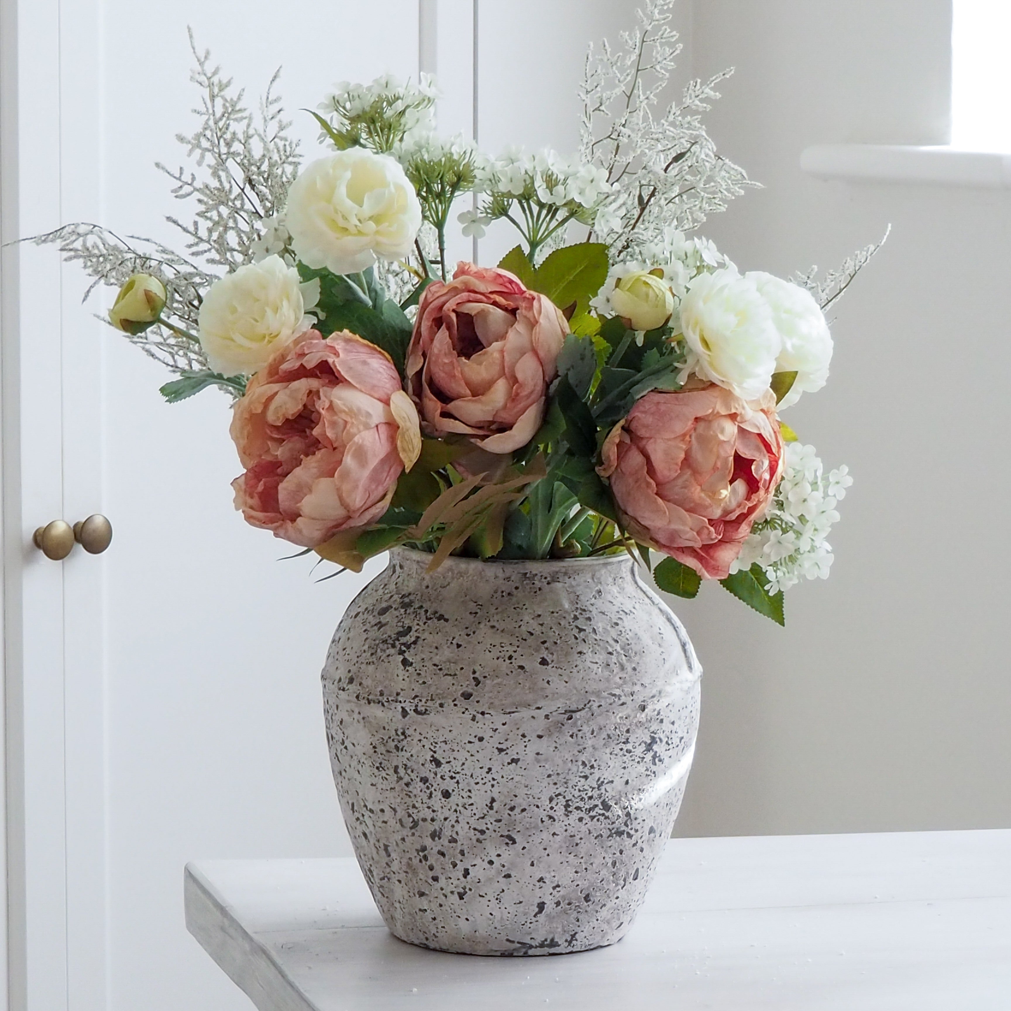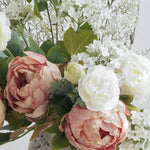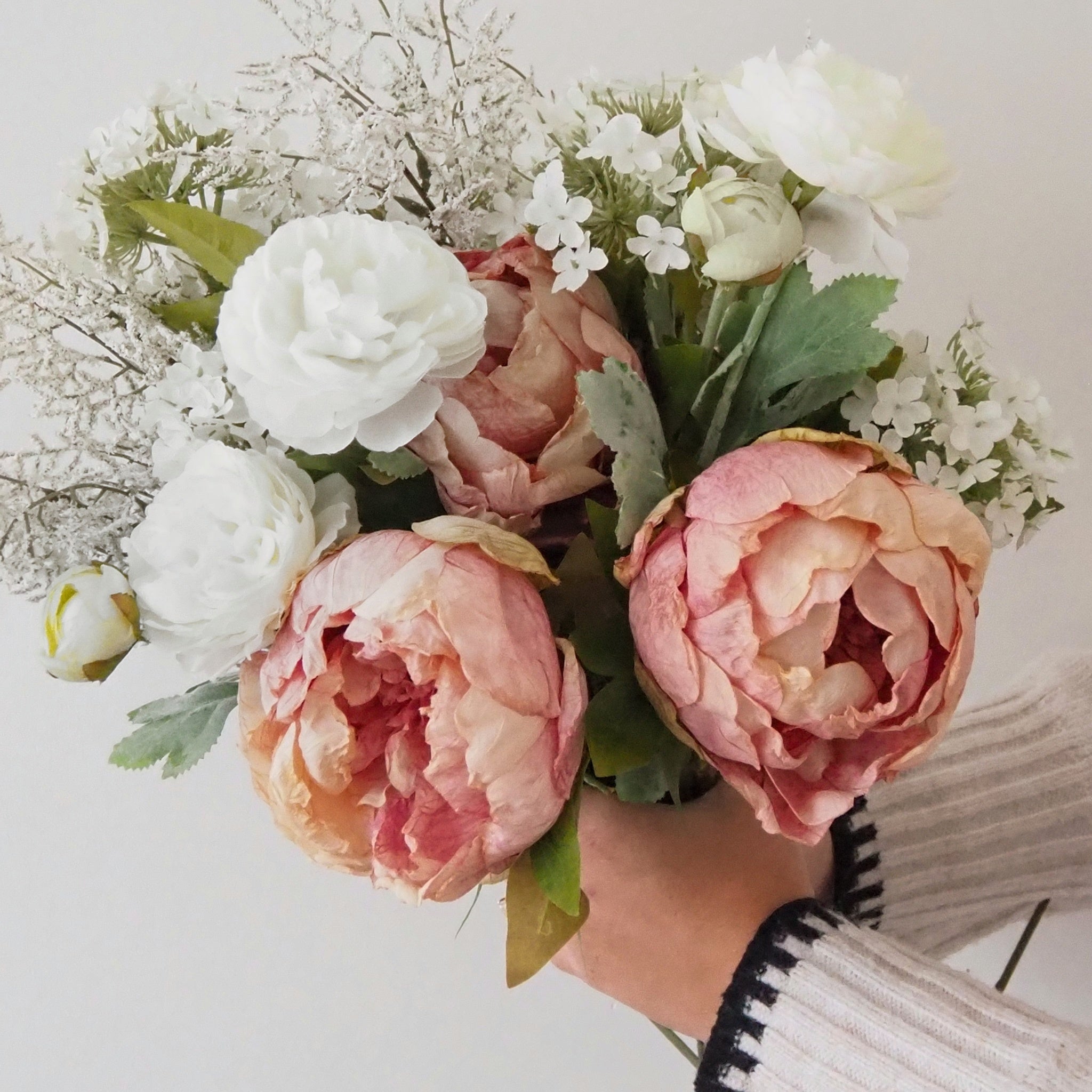 A stunning addition to our bouquet collection, these dried touch closed peony stems are perfect for creating a dramatic floral display in your home. Teamed with our delicate Charlotte & Limonium stems with the addition of our timeless Ranunculus stems. The heads of each flower are frilled with beautiful detailed petals and ultra realistic leaves. Style in your favourite vase for a stunning display.