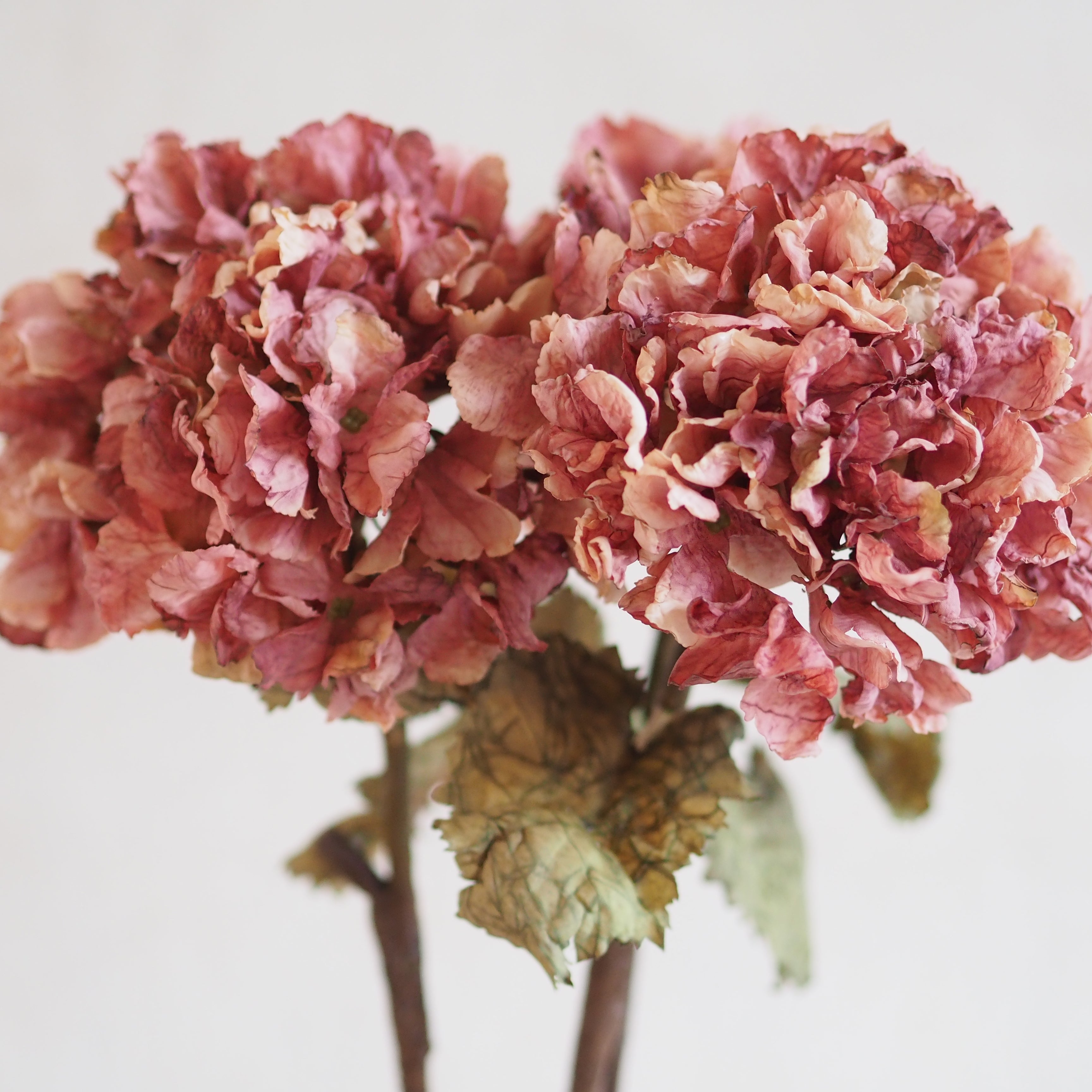 3 x Pink Dried Look Hydrangea Stems- H52cm W17cm